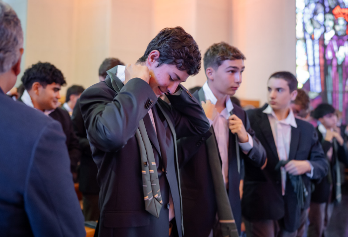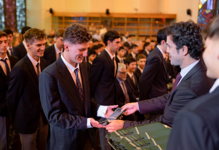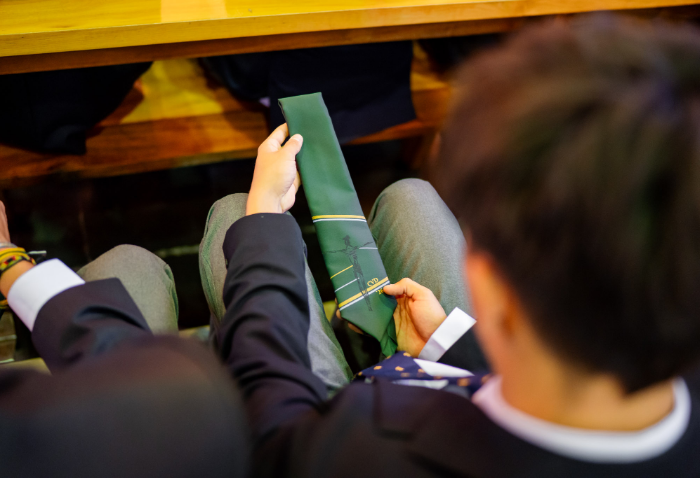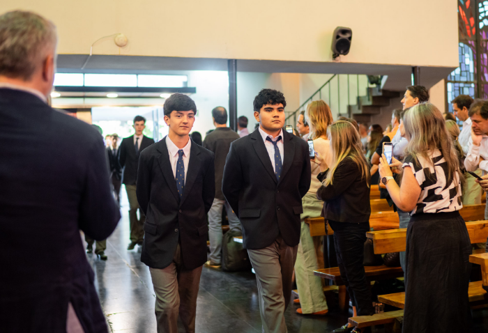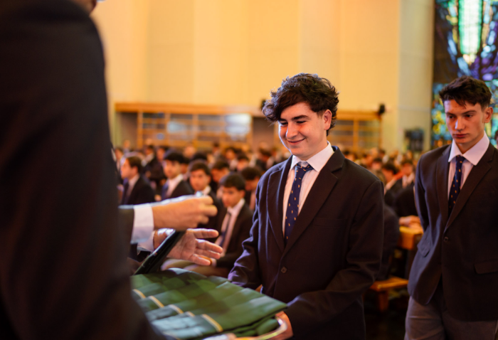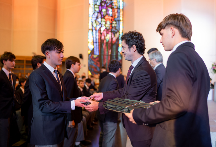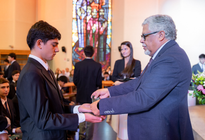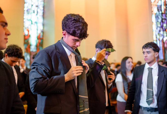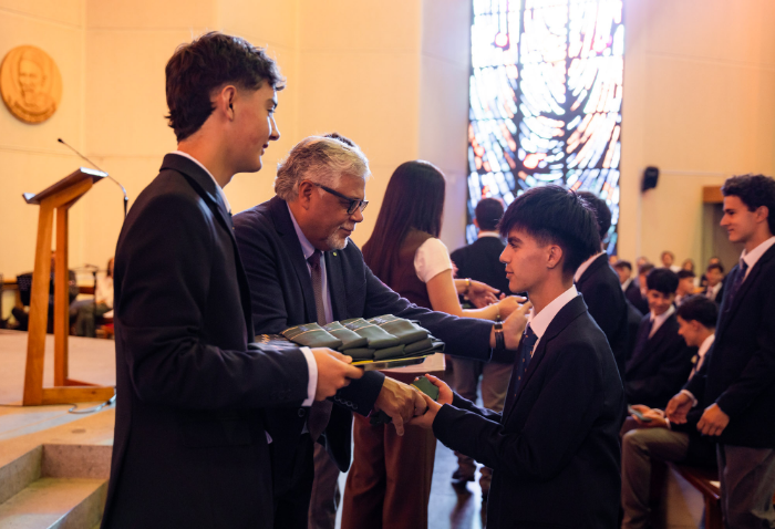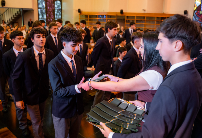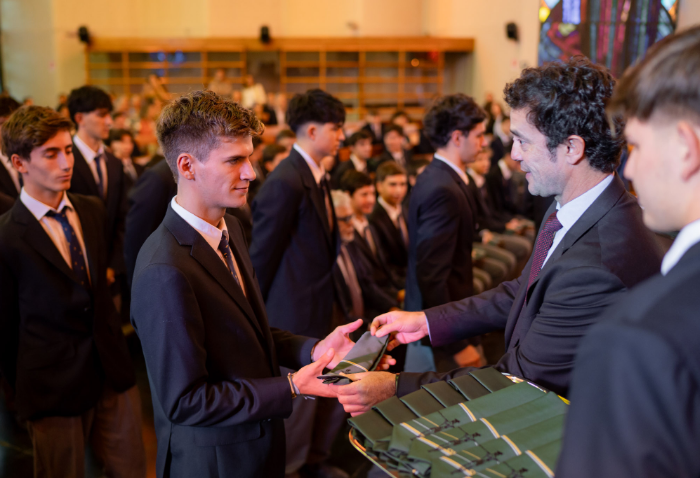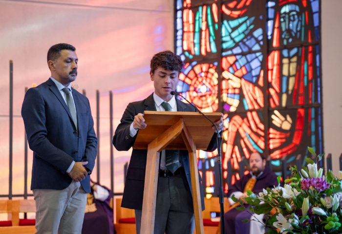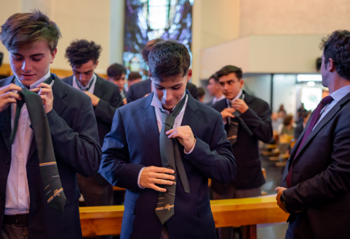 En representación de los profesores jefes del nivel, José Luis Rebolledo invitó a los alumnos a usar la corbata con responsabilidad y a aprovechar este año para aprender y ser agentes transformadores. “La corbata que hoy reciben no es solo un distintivo externo, es el signo de que están preparados para salir al mundo no a servirse de él, sino a servir en él”.