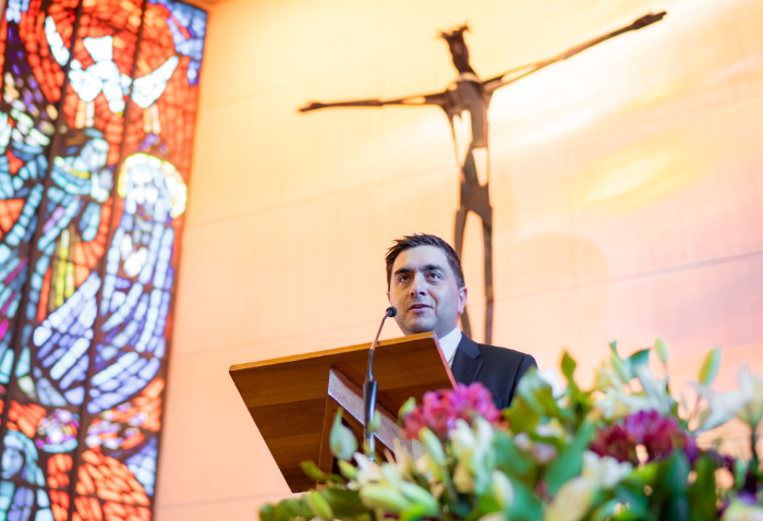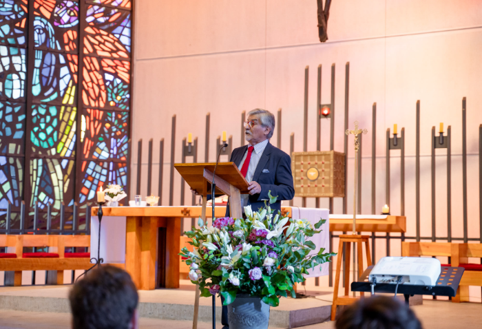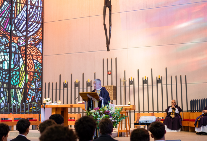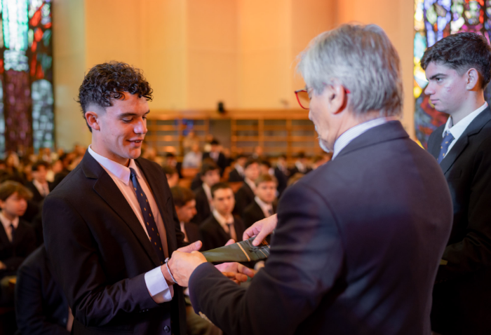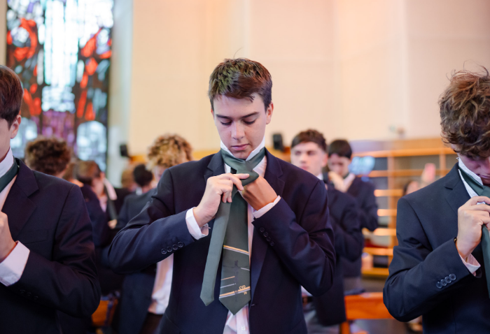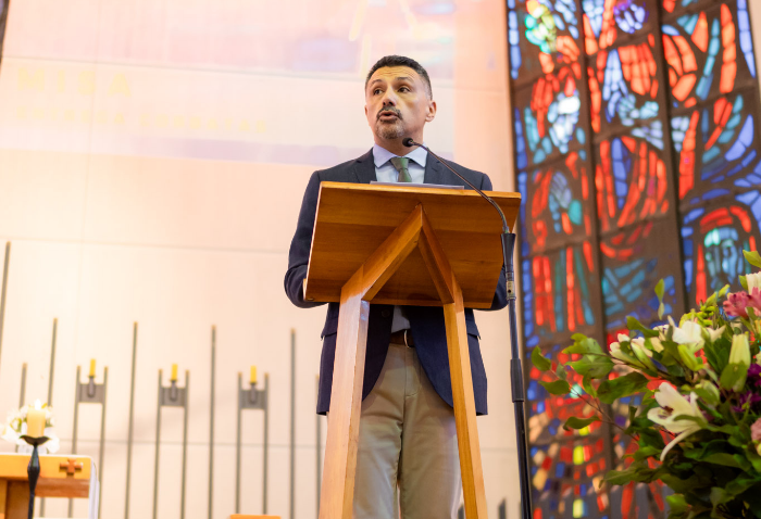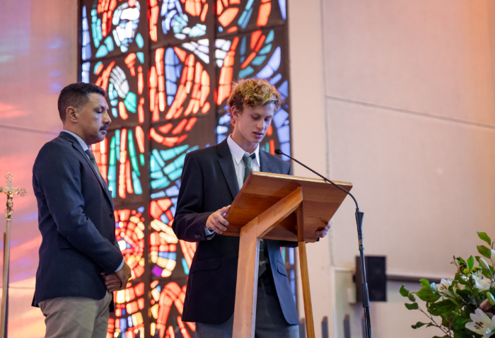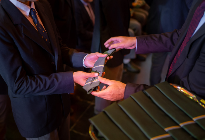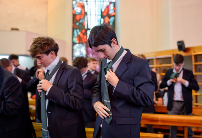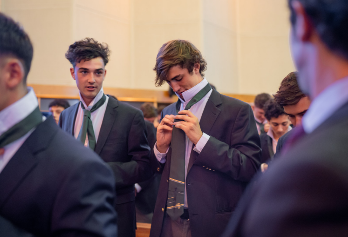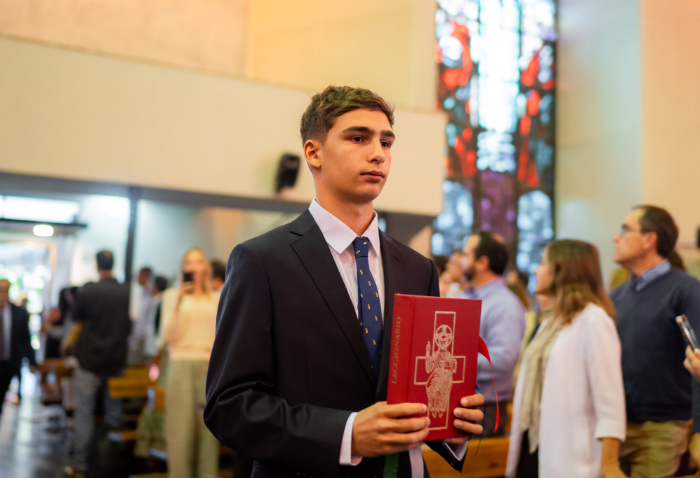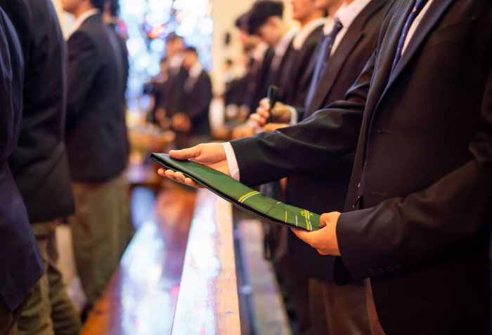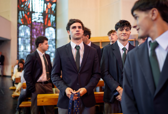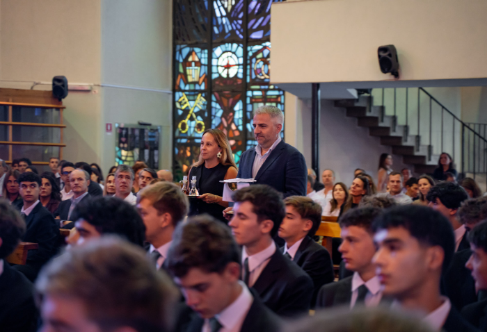 En representación de los profesores jefes del nivel, José Luis Rebolledo invitó a los alumnos a usar la corbata con responsabilidad y a aprovechar este año para aprender y ser agentes transformadores. “La corbata que hoy reciben no es solo un distintivo externo, es el signo de que están preparados para salir al mundo no a servirse de él, sino a servir en él”.