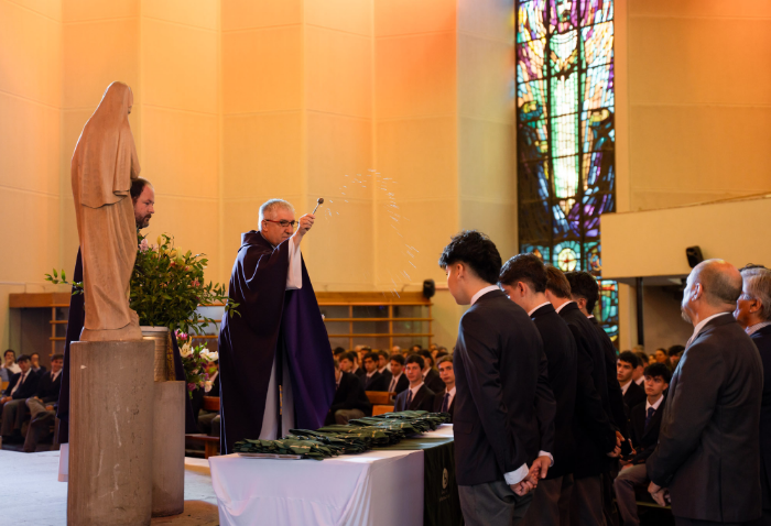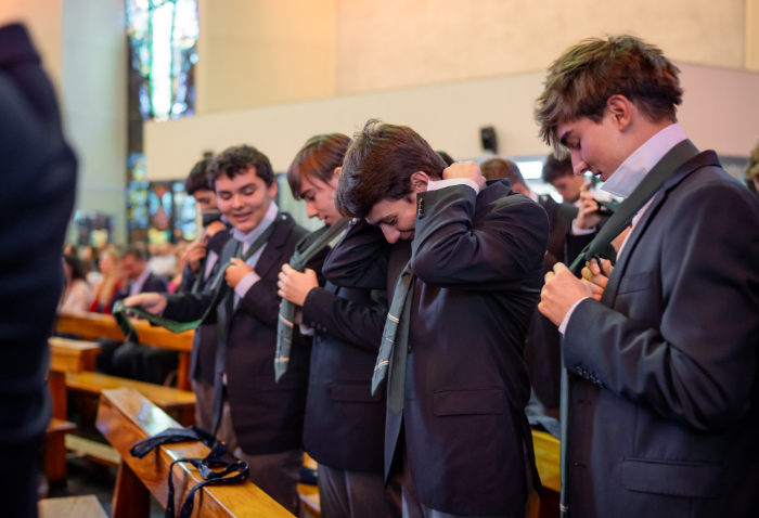 En una misa presidida por el padre Miguel Ángel González, svd, rector del CVD, los alumnos recibieron su corbata de mano de sus profesores jefes, como símbolo de responsabilidad y ejemplo que los distingue como los más grandes del colegio.