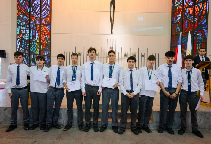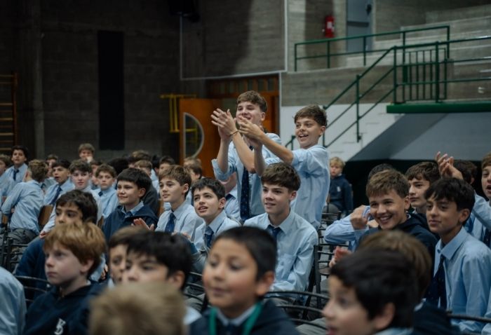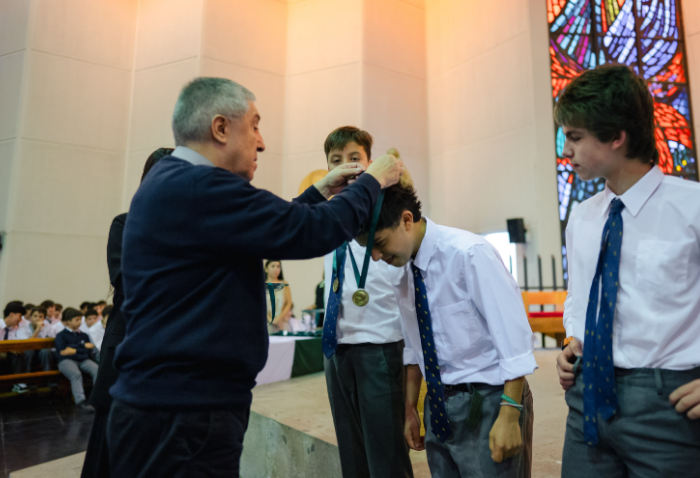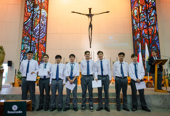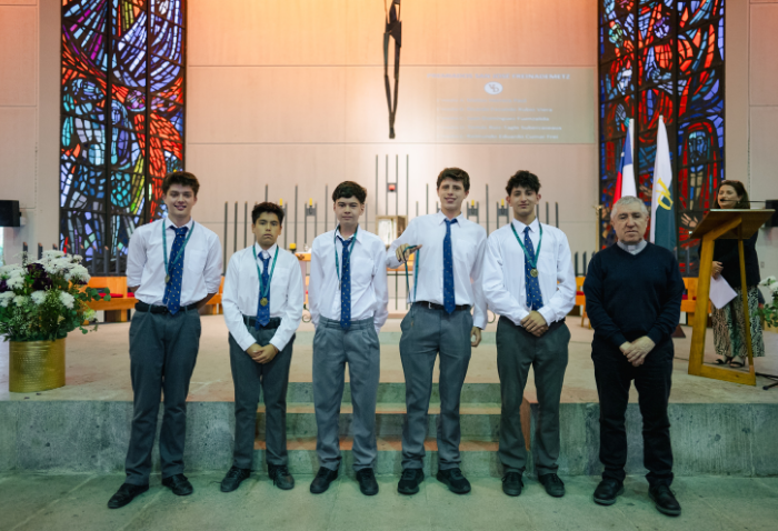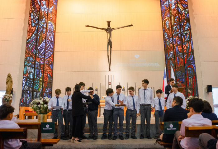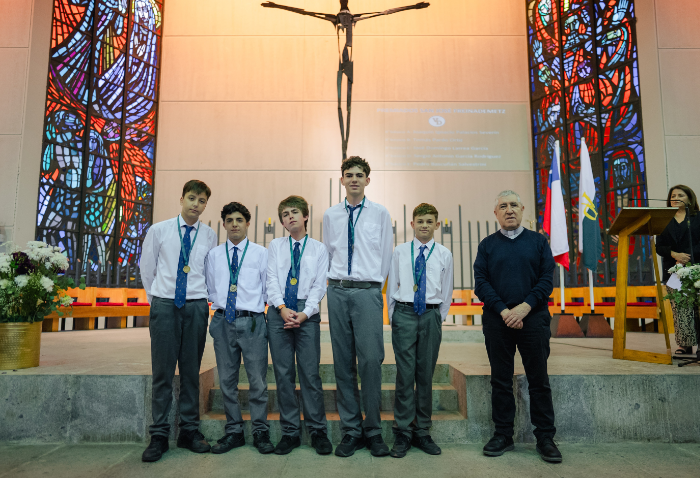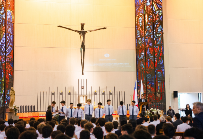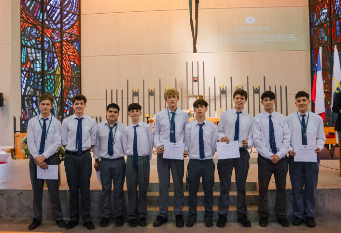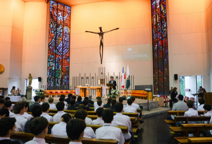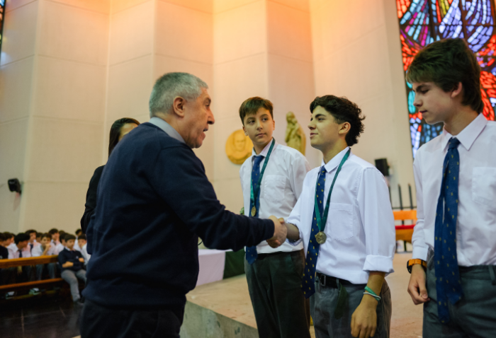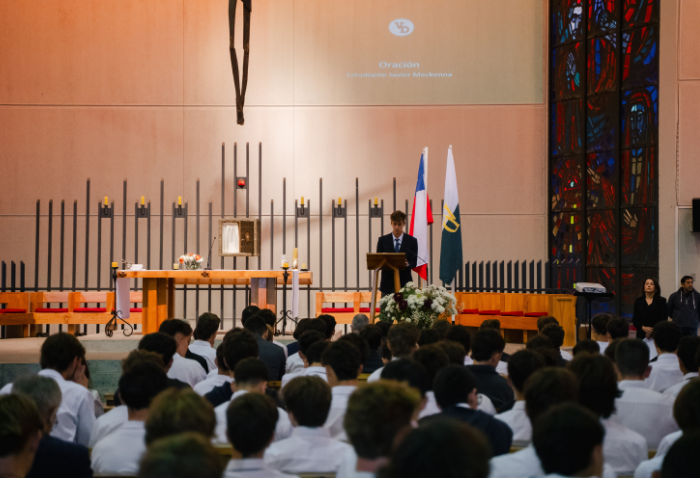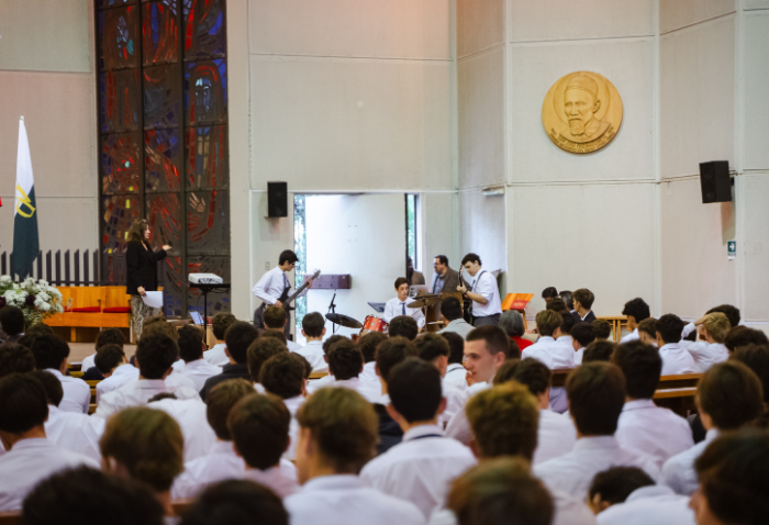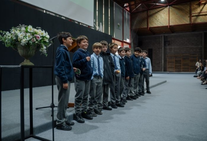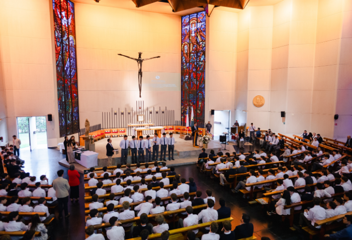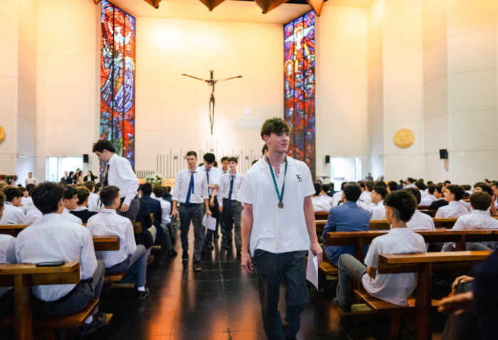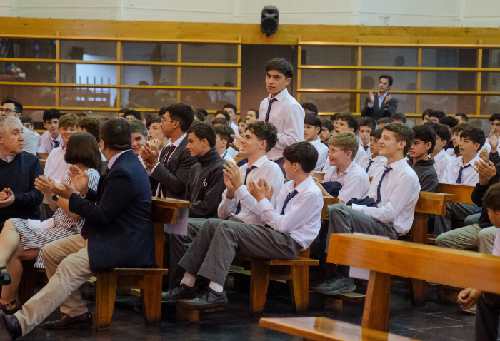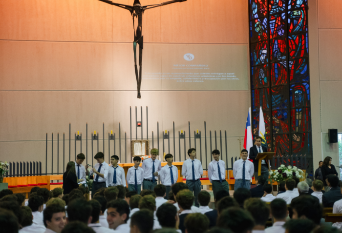 De forma simultánea en el gimnasio, auditorio e iglesia, los alumnos se reunieron por última vez en el año para agradecer todos los aprendizajes de este 2025 y para reconocer a los alumnos con los premios de Mejor Compañero, San José Freinademetz, Excelencia Académica y San Arnoldo Janssen.