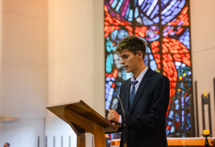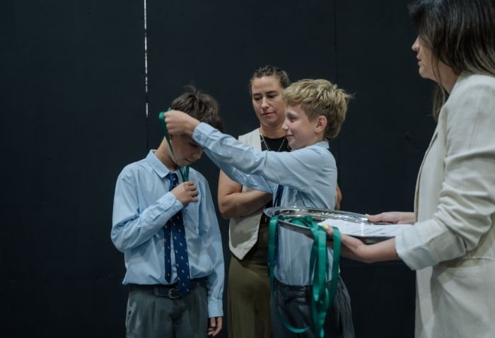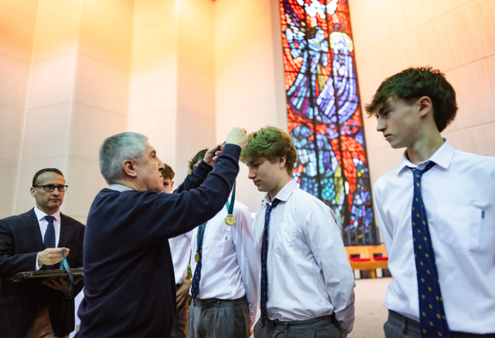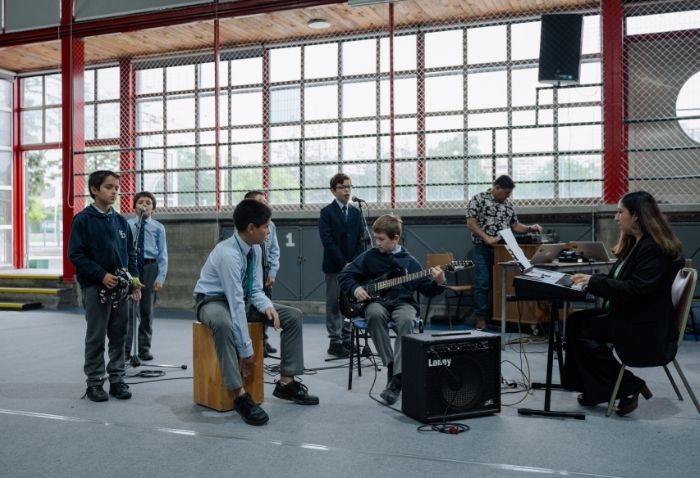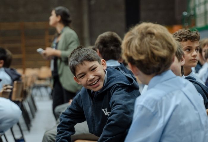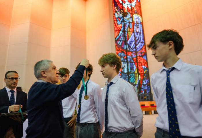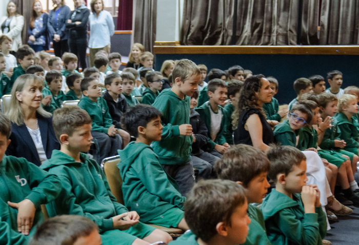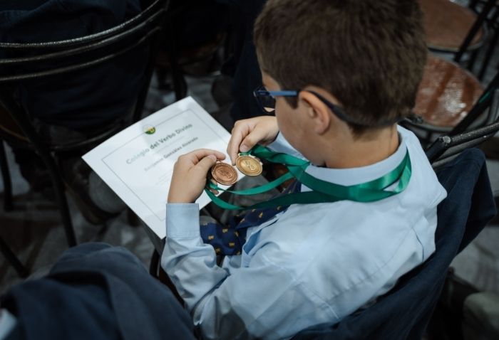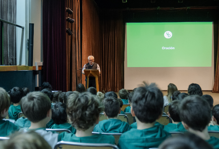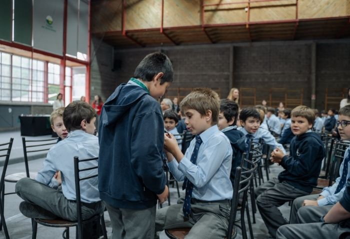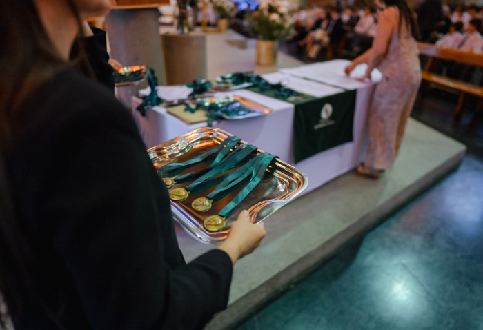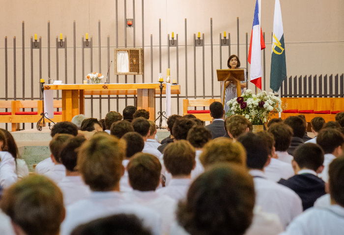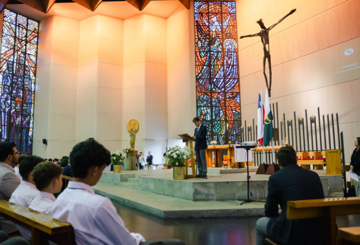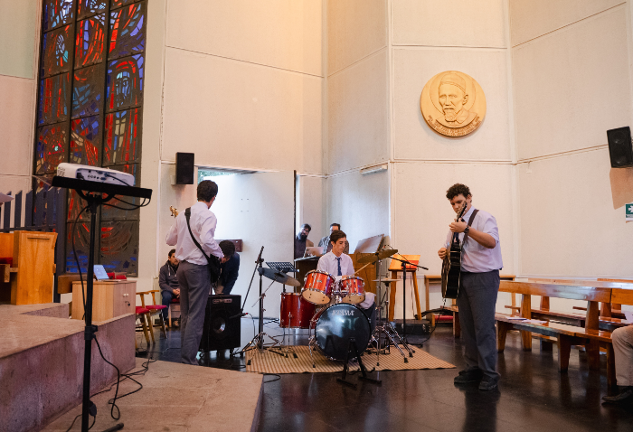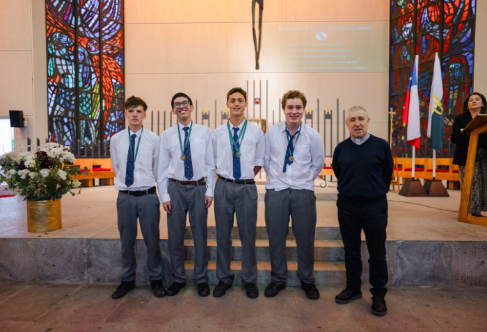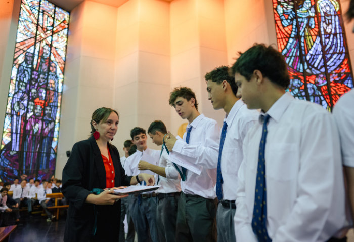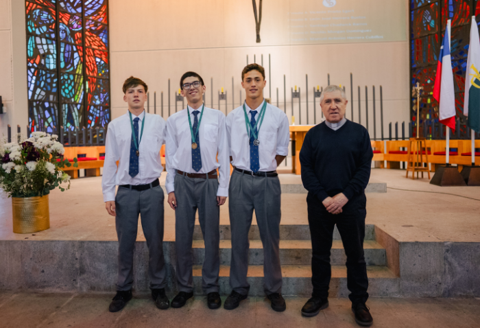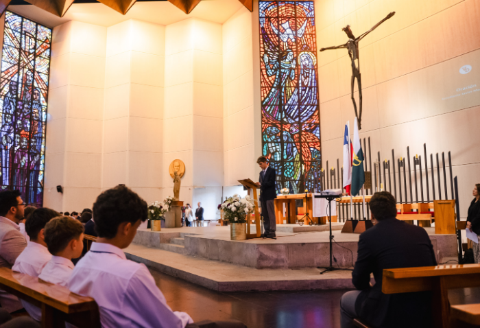 De forma simultánea en el gimnasio, auditorio e iglesia, los alumnos se reunieron por última vez en el año para agradecer todos los aprendizajes de este 2025 y para reconocer a los alumnos con los premios de Mejor Compañero, San José Freinademetz, Excelencia Académica y San Arnoldo Janssen.
