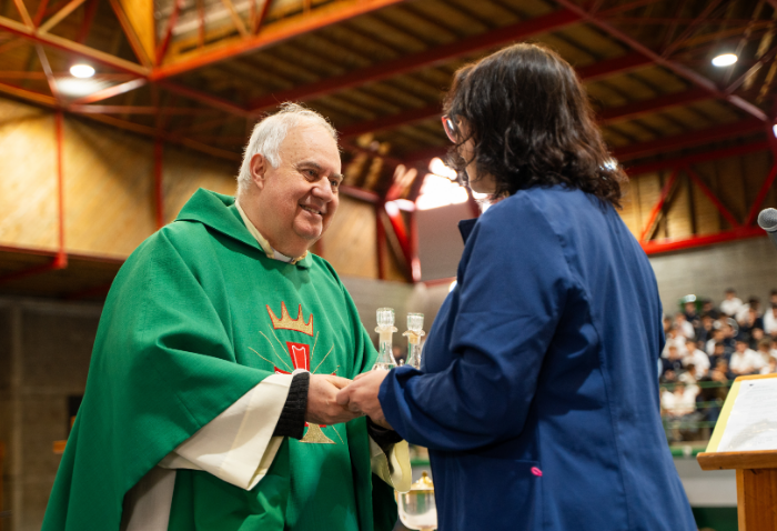 Ana María Tomassini, directora del colegio, agradeció a Dios por poner al Padre Sergio en nuestro camino. “Le agradecemos a Dios por su calidez, por su manera de acercarse a las personas, por toda la gente que recibió de mano del padre todos los sacramentos. Por su preocupación por cada persona y por el liderazgo en los dos colegios donde ha estado, preocupándose por cada uno de los alumnos”, añadió.