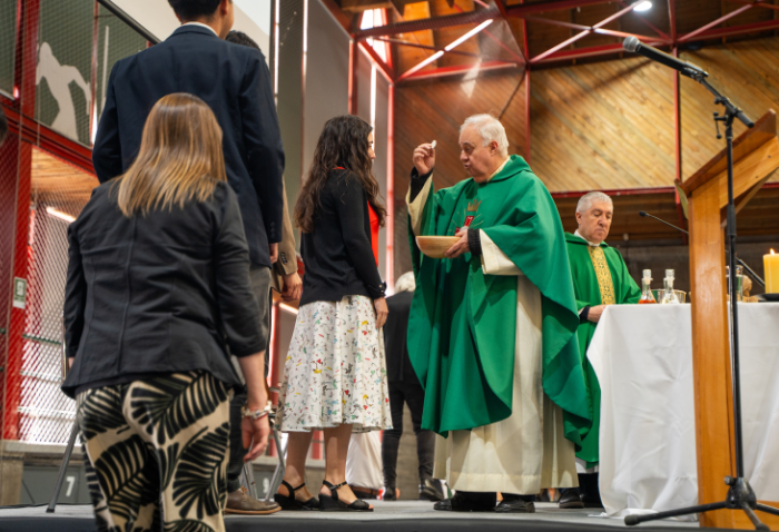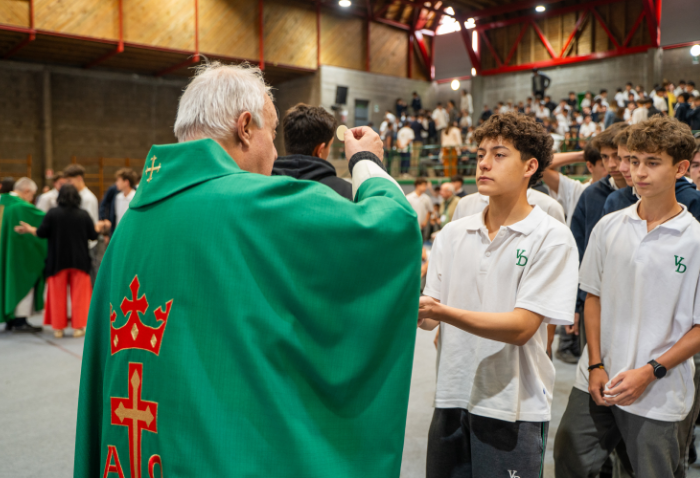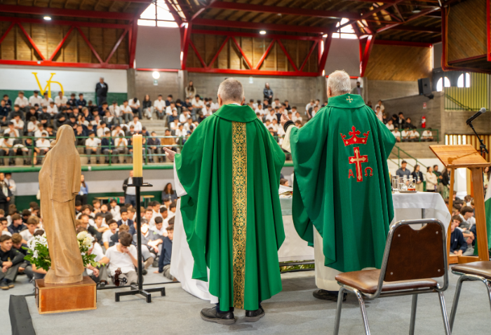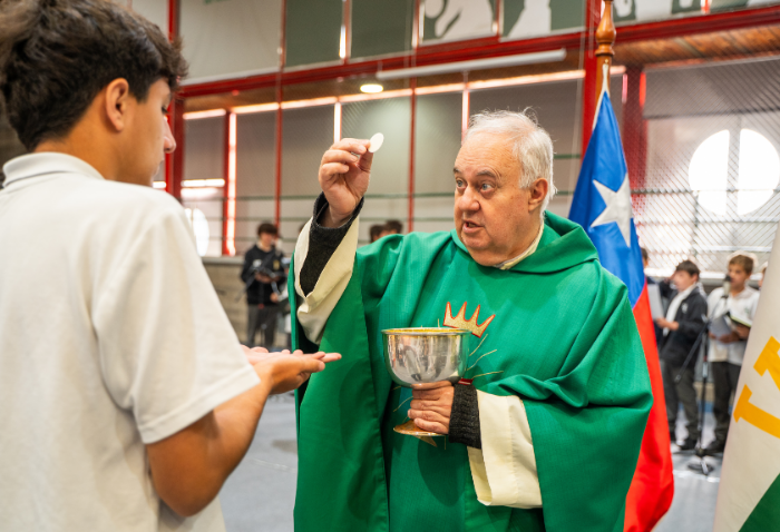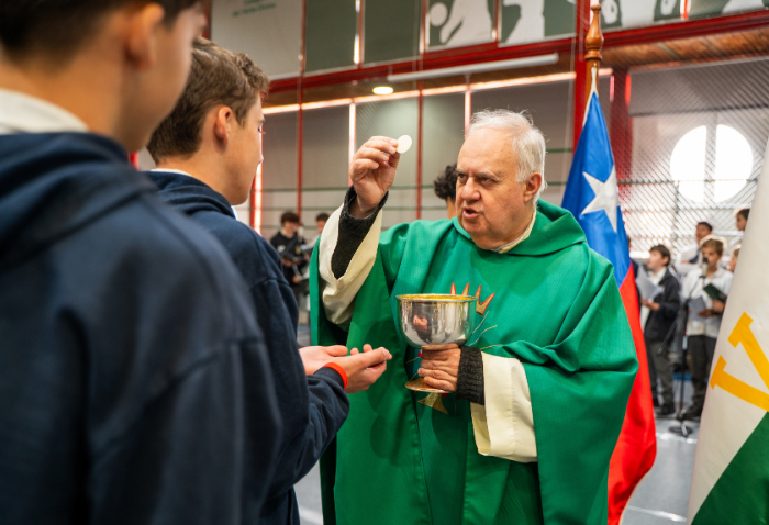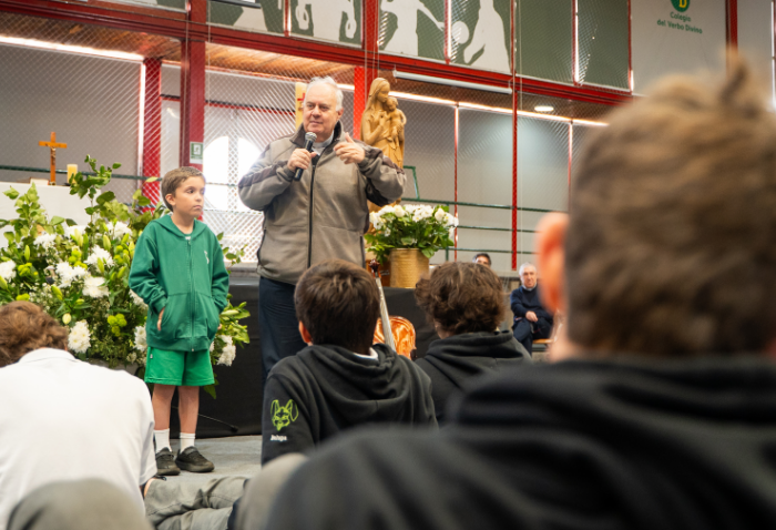 Con una emocionante eucaristía y un destacado homenaje, la comunidad del Verbo Divino celebró el viernes 28 de noviembre en el gimnasio, los nueve años que el padre Sergio Edwards., svd, fue rector de nuestro colegio y acompañó a nuestra comunidad con su liderazgo, cercanía y vocación.