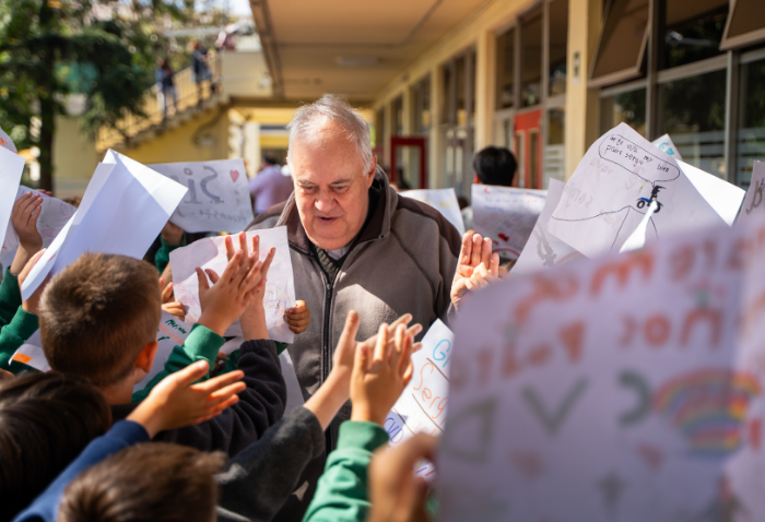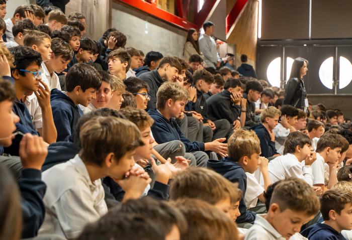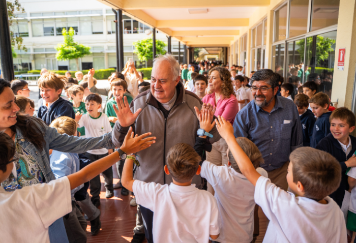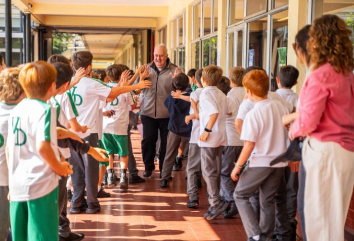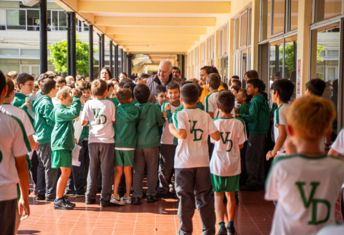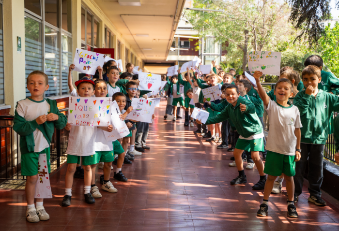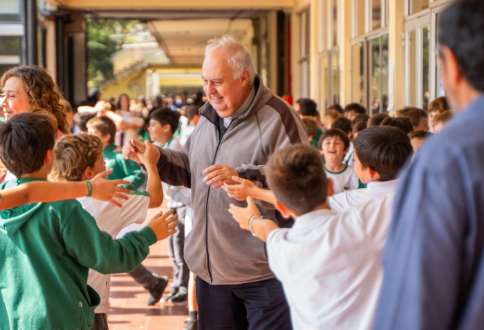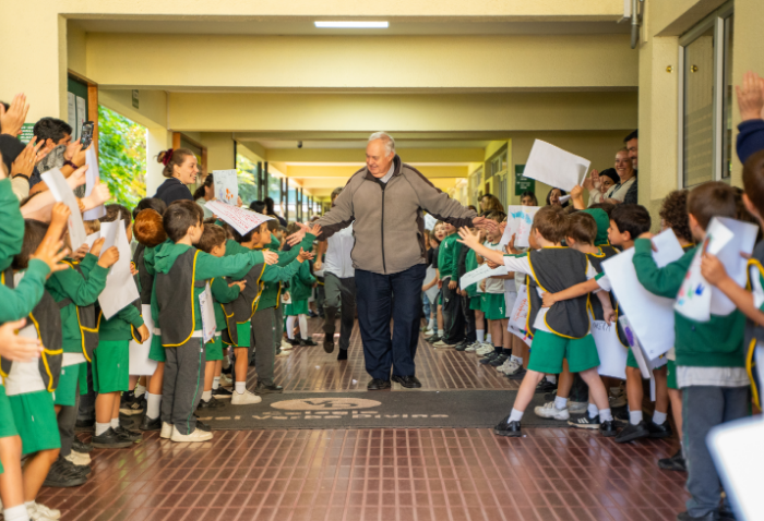 Al salir del gimnasio, un camino de alumnos dispuesto en el pasillo central despidió al Padre Sergio con aplausos, carteles y mucho cariño.