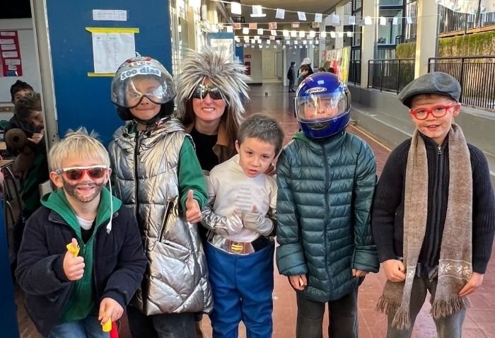 Con entretenidos disfraces, niños de 1° y 2° EB celebraron el día del 100