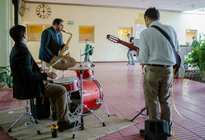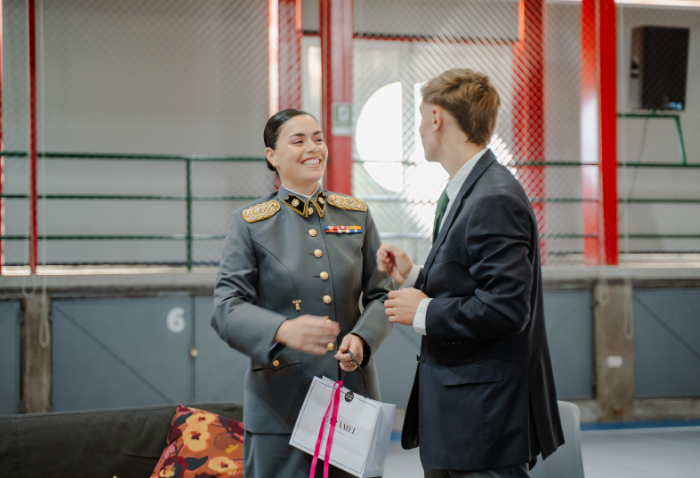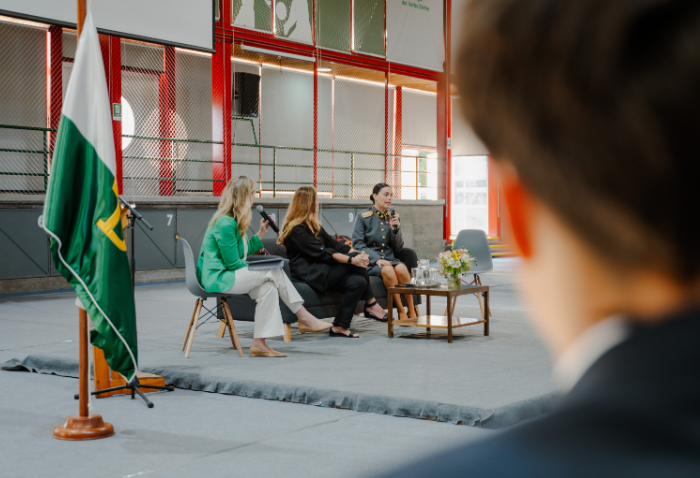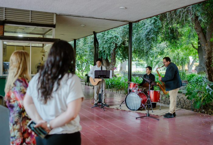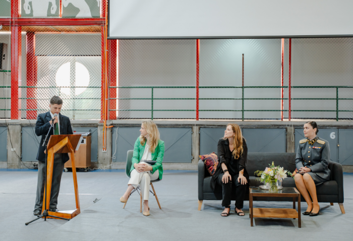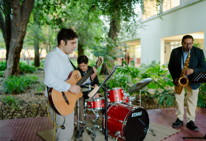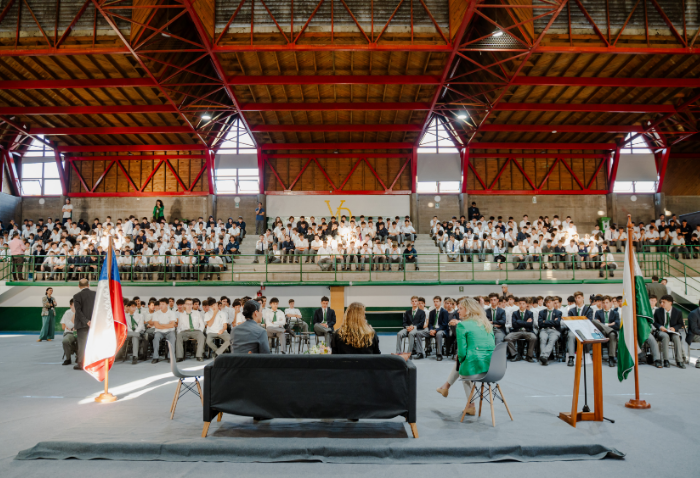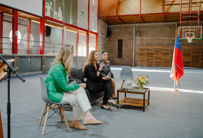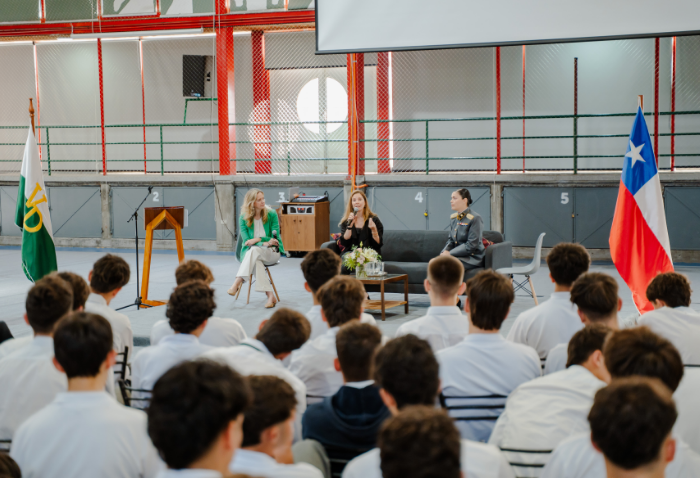 La mañana comenzó con una presentación musical a cargo de Cristóbal Rojas, Jaime Hevia y Ramón Garrido, profesores del departamento de Música. Luego, el Centro de Alumnos organizó un conversatorio, moderado por Marily Lüders, periodista especialista en economía y finanzas, en el que participaron la Mayor Rocío Flores, oficial del Ejército, y Fernanda Vicente, emprendedora, directora de Scotiabank Chile y cofundadora de Mujeres del Pacífico.