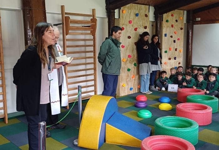 La instancia contó con la presencia de Ana María Tomassini, directora, Pilar Merino, subdirectora del primer ciclo, Germán Célis, jefe del departamento de Educación Física, y el padre Sergio Edwards, svd, Rector del CVD, quien bendijo la sala y agradeció a Dios por este especial espacio de aprendizaje.