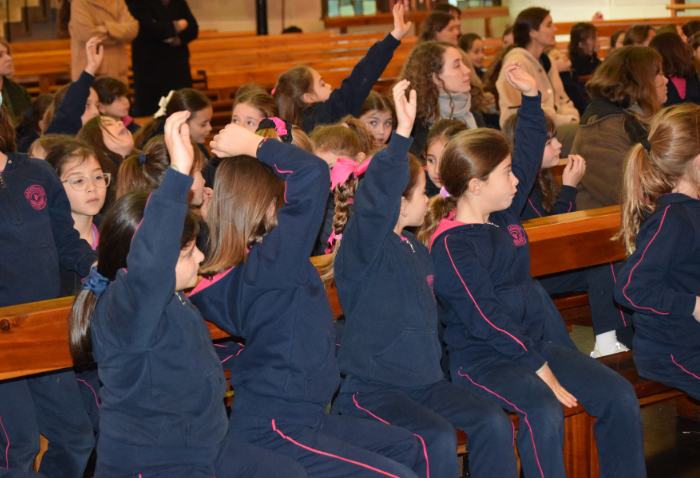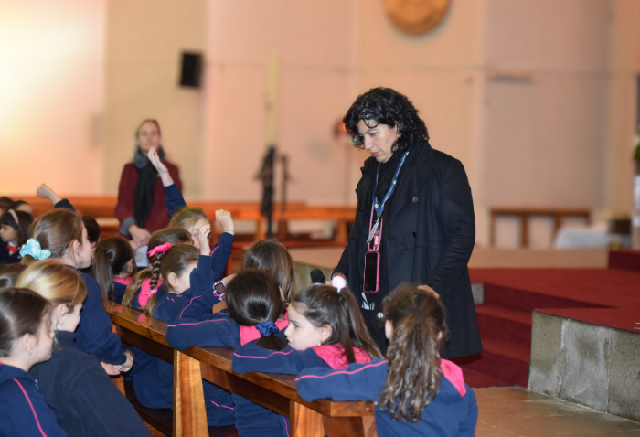 La encargada de Cultura del Verbo Divino, Daniela Saavedra, relató la historia de la iglesia y de sus vitrales, además de su importancia a nivel patrimonial, mientras que el padre Sergio Edwards, svd, rector del CVD, respondió algunas dudas de las alumnas.