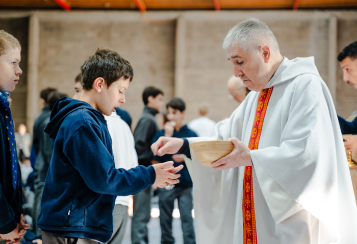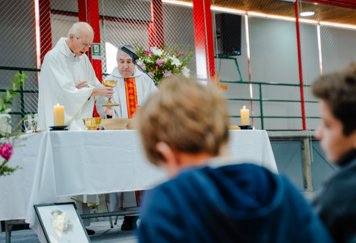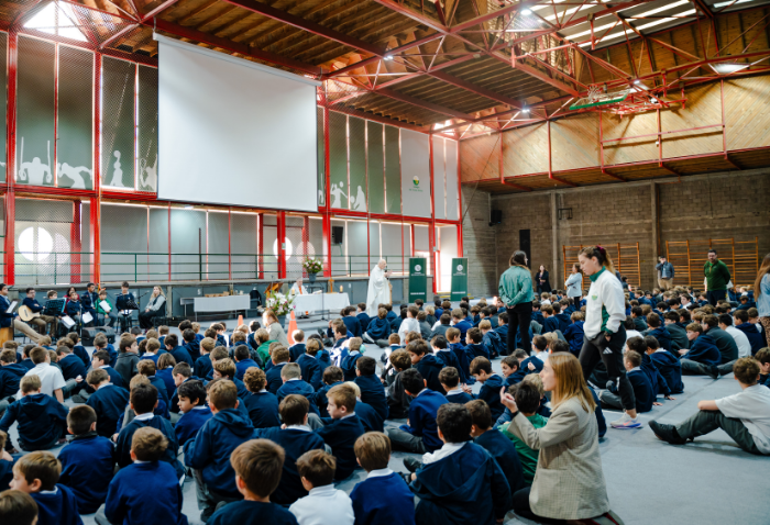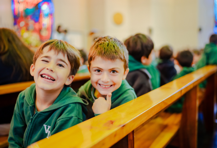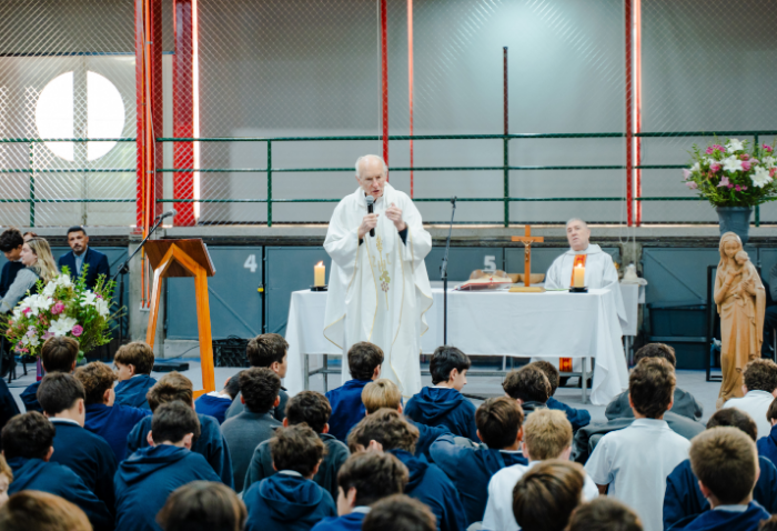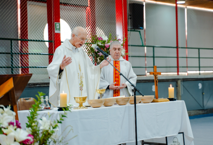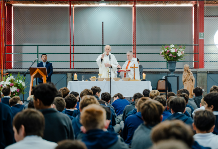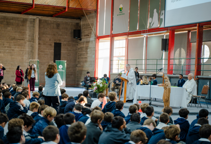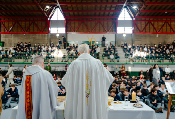 En las ceremonias -una por ciclo- se bendijeron las nuevas imágenes de los santos verbitas Arnoldo y José, que acompañarán a los cursos de ahora en adelante.