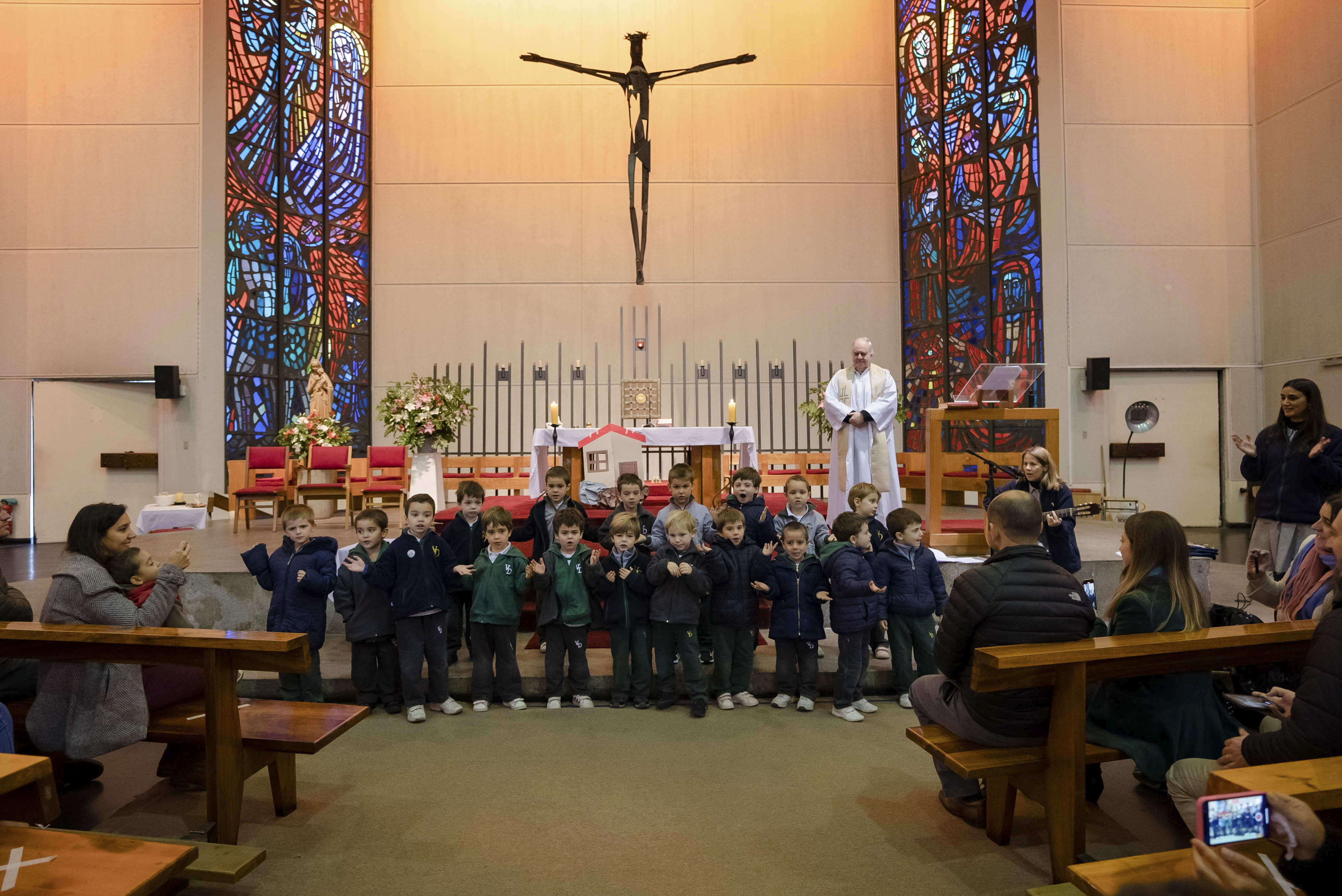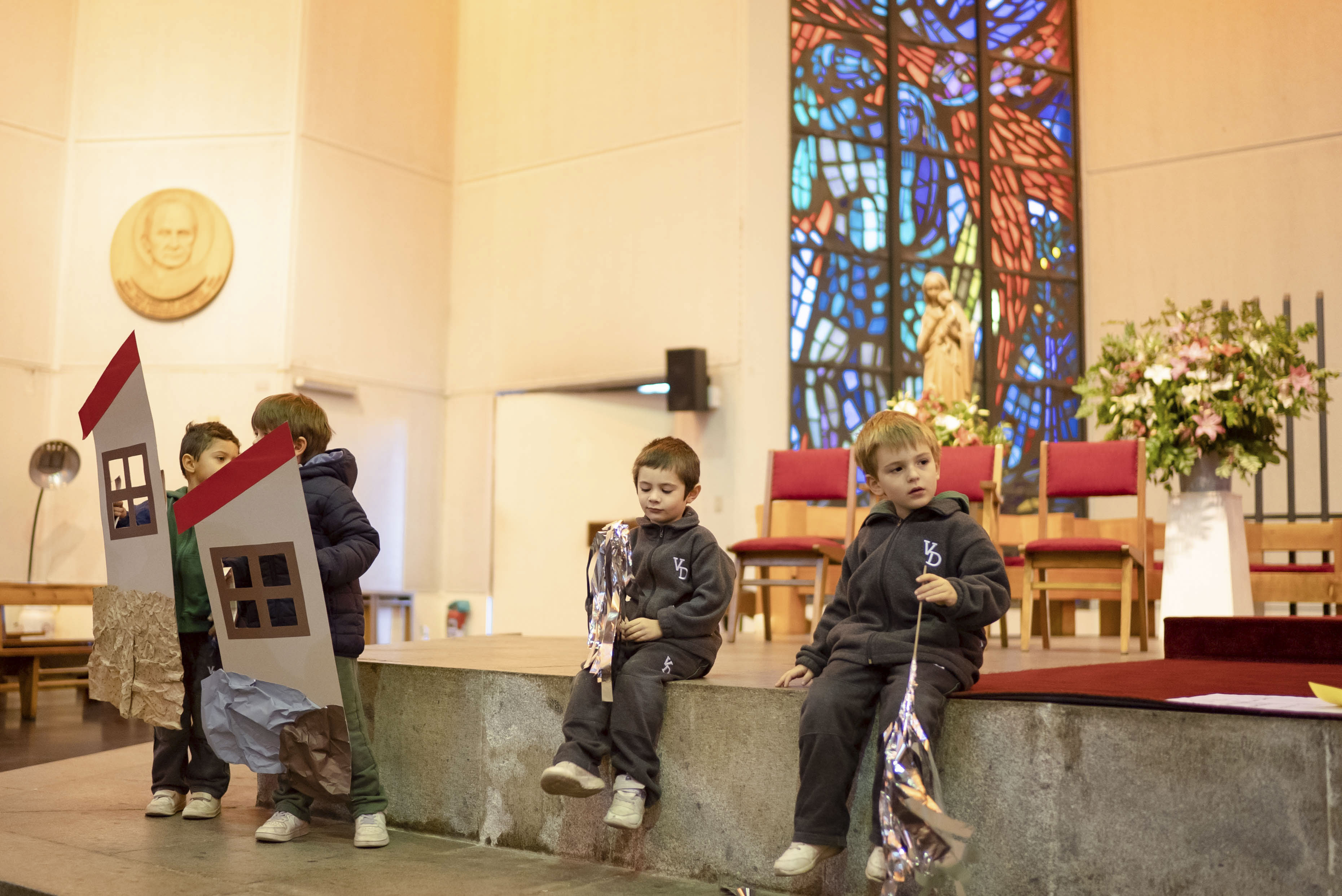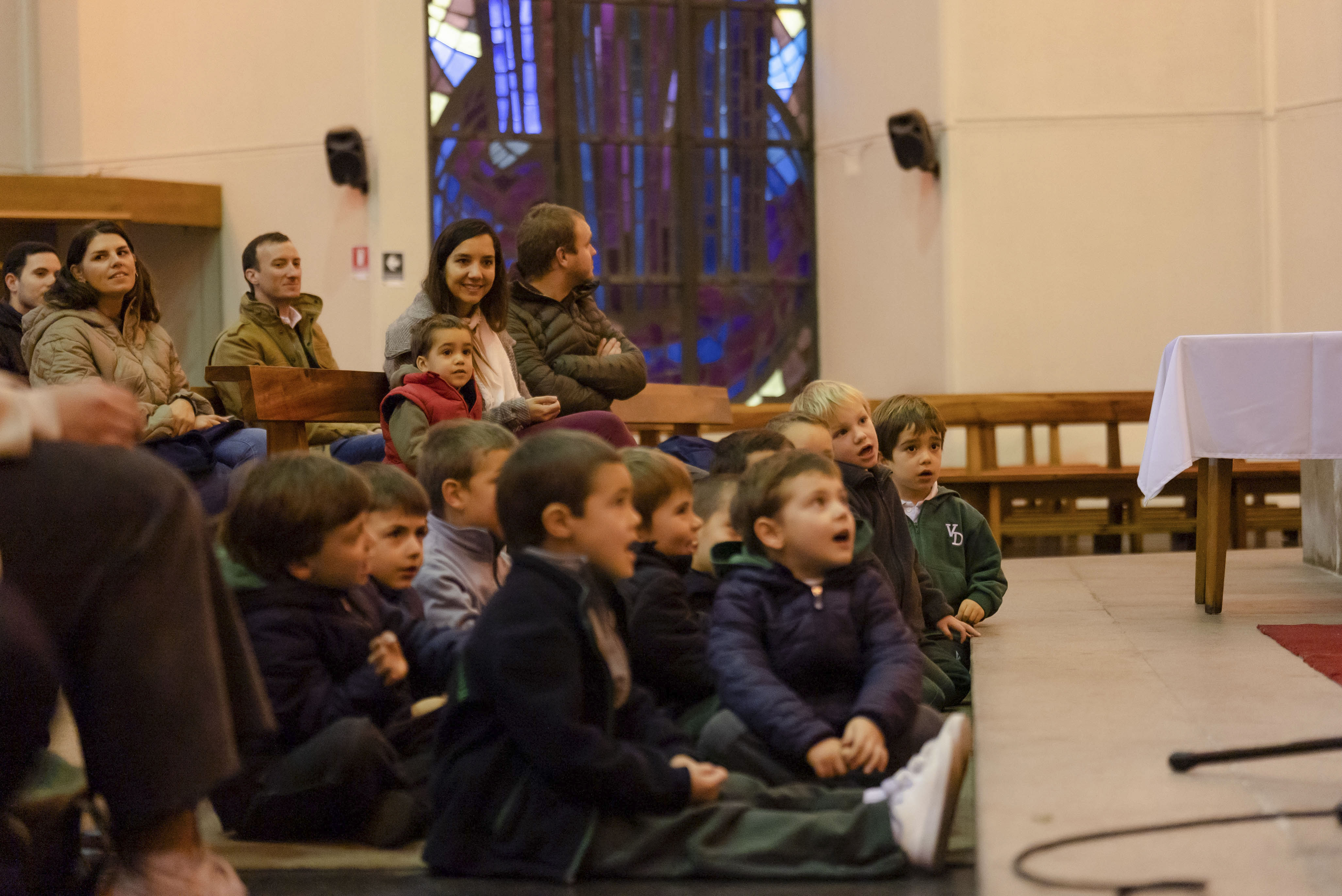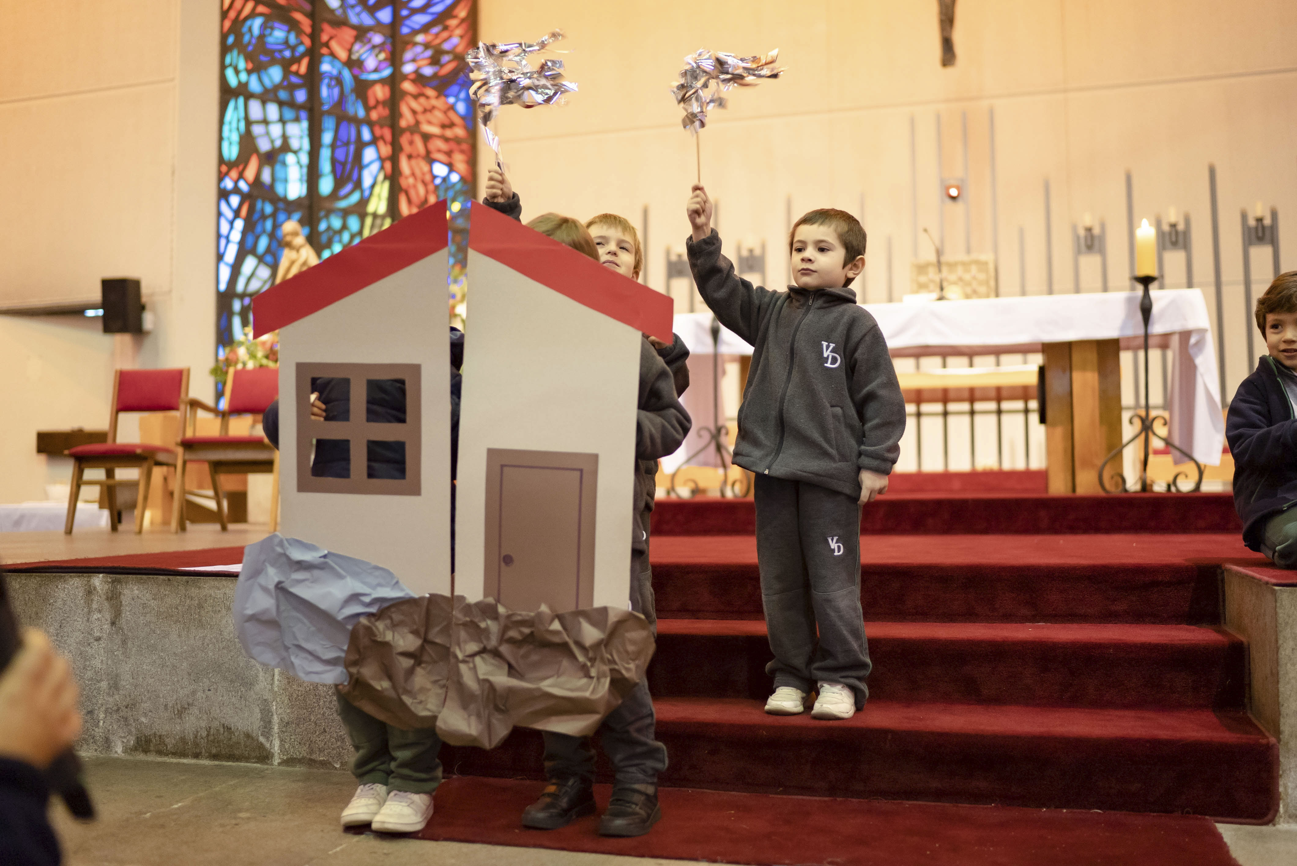 Acompañados de sus padres, los niños reconocieron la importancia de la Palabra de Dios en sus vidas y en este inicio en su formación como estudiantes del Verbo Divino. A través de la lectura y representación de la Parábola de la casa sobre rocas, los alumnos aprendieron que lo importante de una casa son los integrantes de esa familia, los que dan seguridad y confianza.