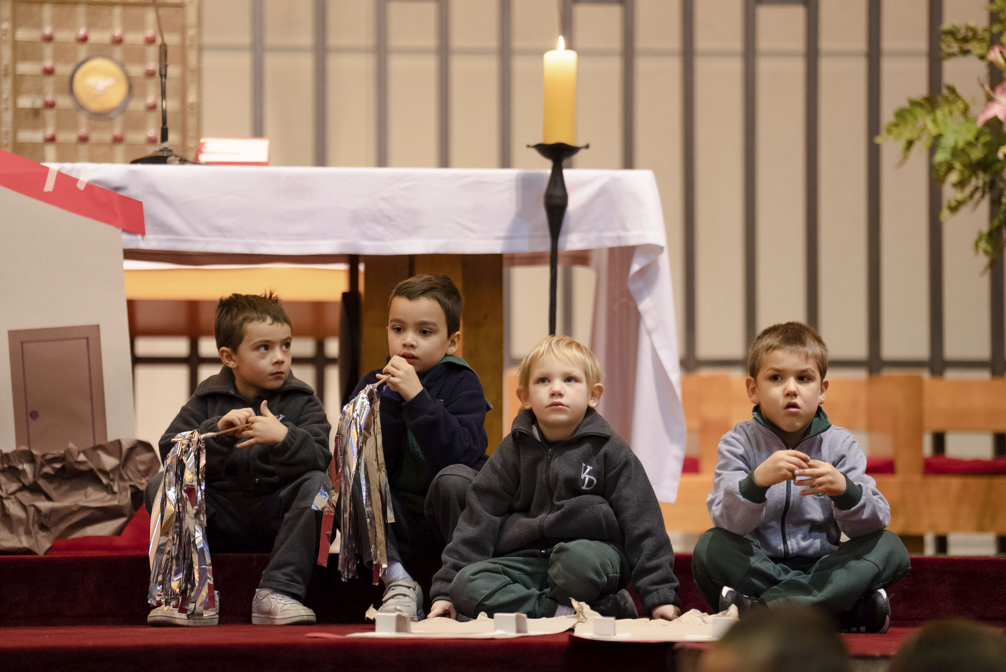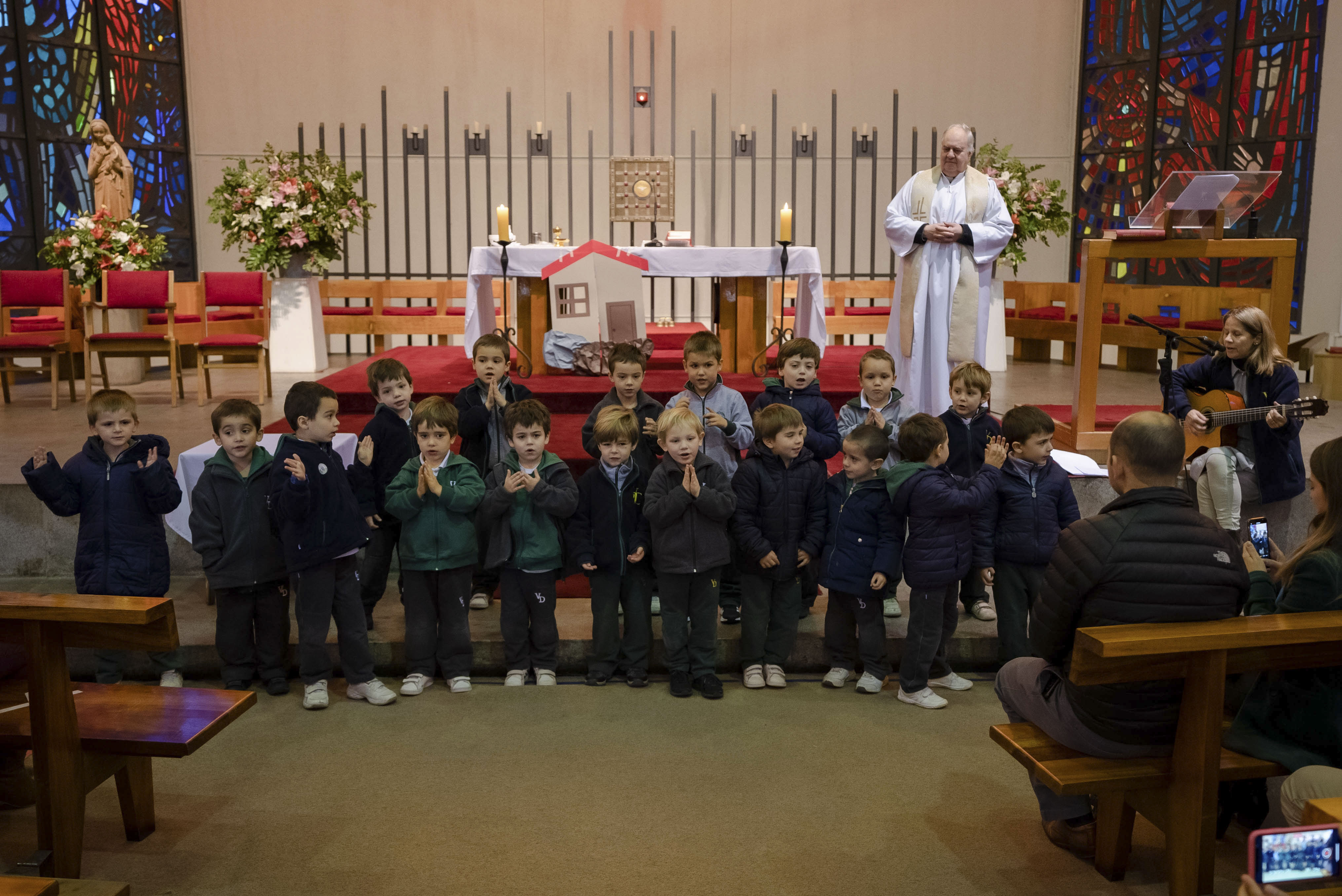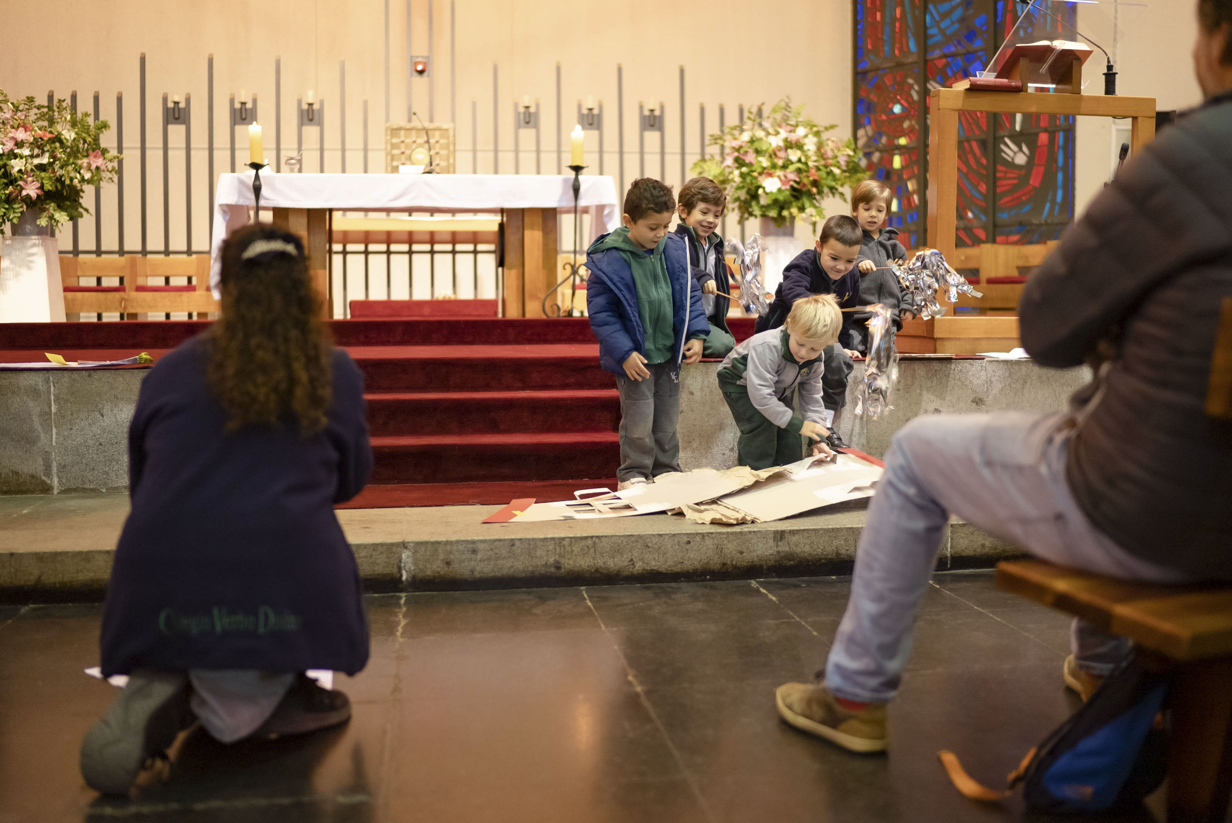 Acompañados de sus padres, los niños reconocieron la importancia de la Palabra de Dios en sus vidas y en este inicio en su formación como estudiantes del Verbo Divino. A través de la lectura y representación de la Parábola de la casa sobre rocas, los alumnos aprendieron que lo importante de una casa son los integrantes de esa familia, los que dan seguridad y confianza.