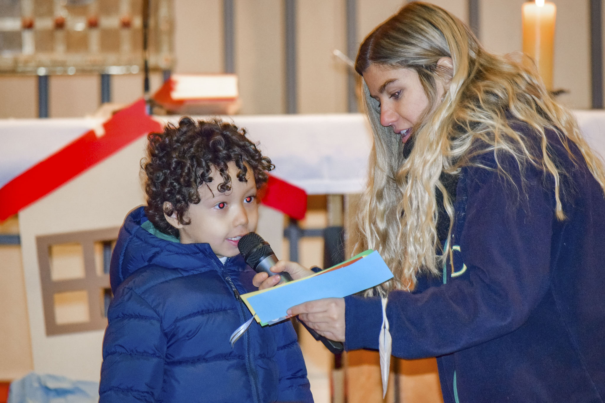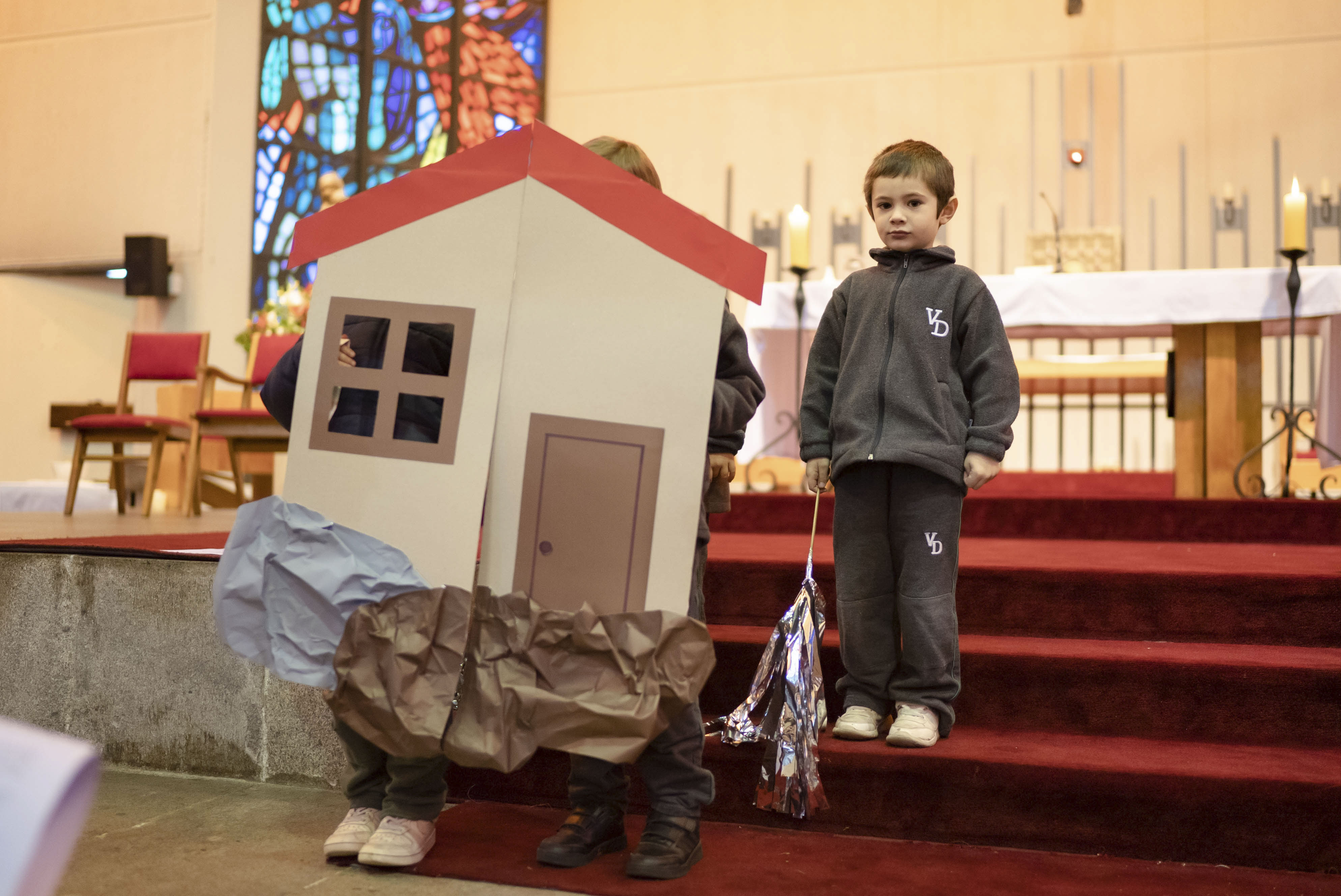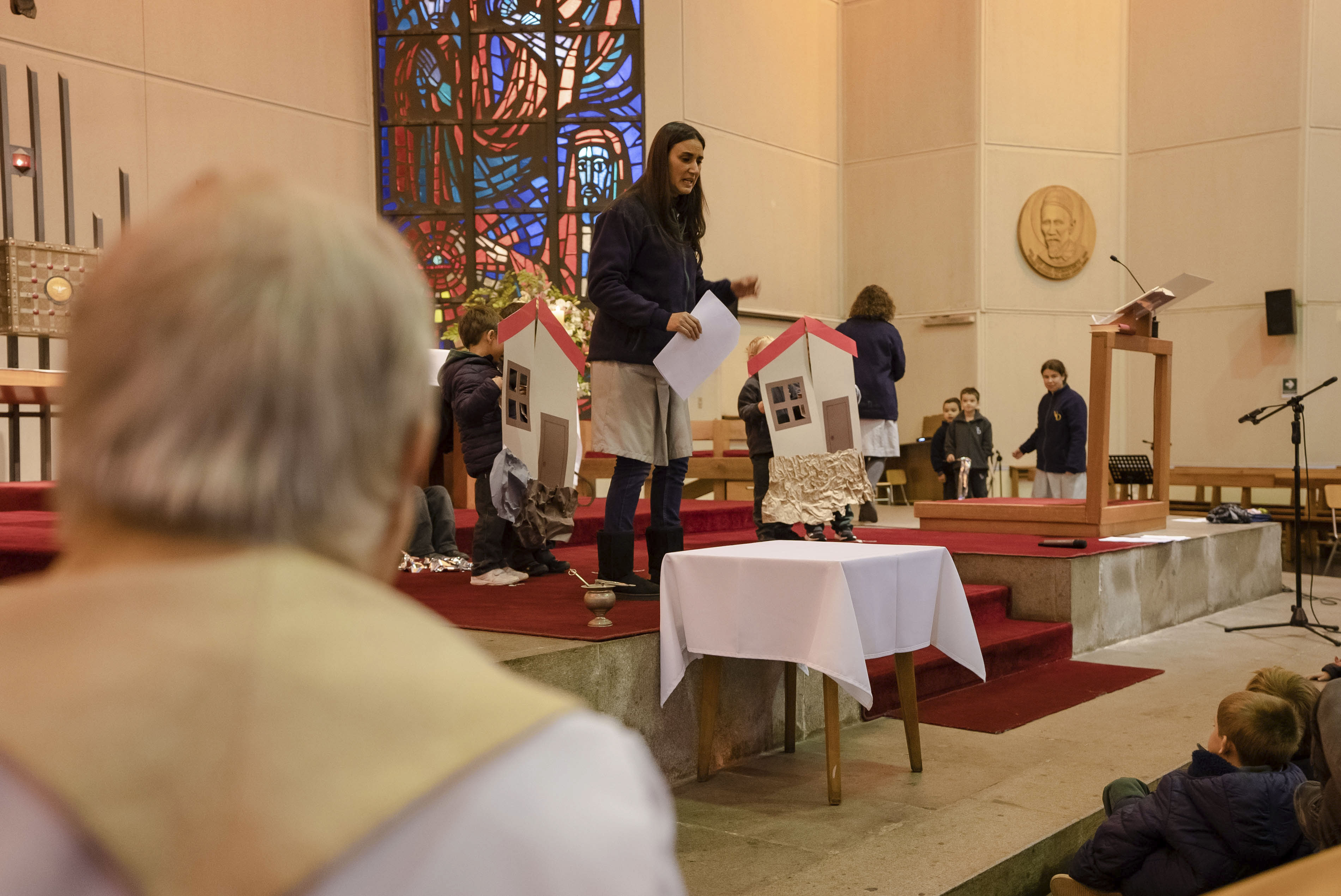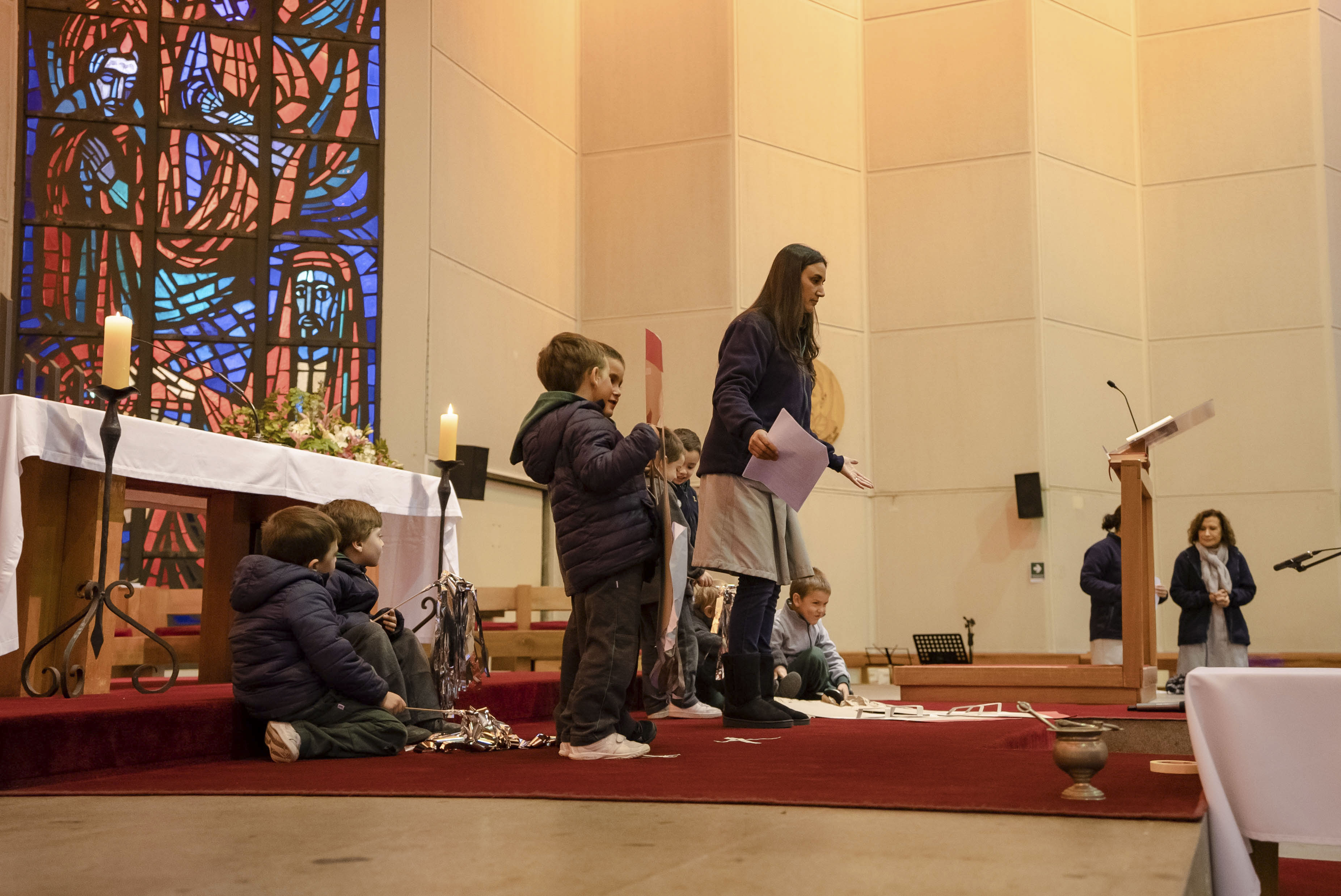 Acompañados de sus padres, los niños reconocieron la importancia de la Palabra de Dios en sus vidas y en este inicio en su formación como estudiantes del Verbo Divino. A través de la lectura y representación de la Parábola de la casa sobre rocas, los alumnos aprendieron que lo importante de una casa son los integrantes de esa familia, los que dan seguridad y confianza.