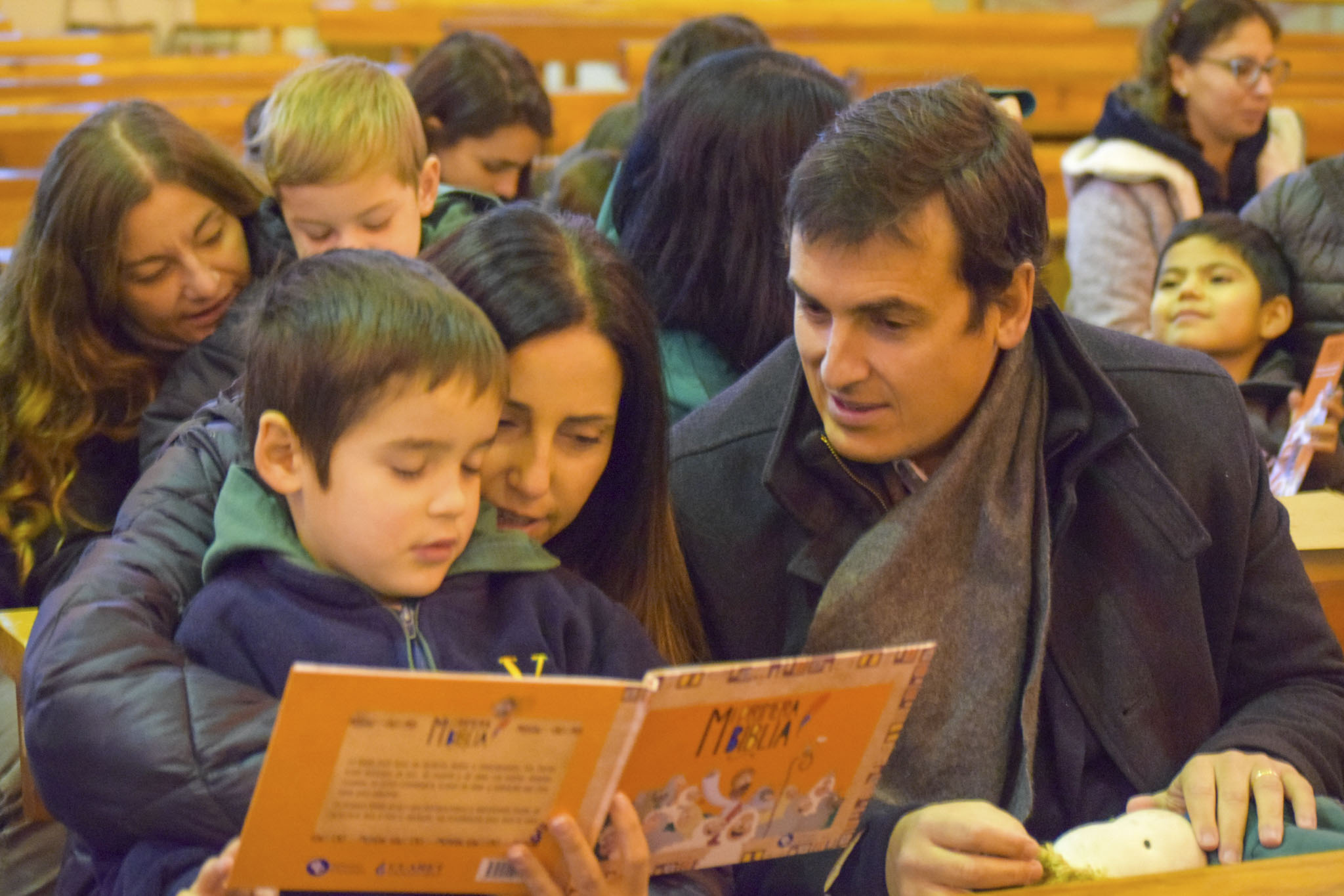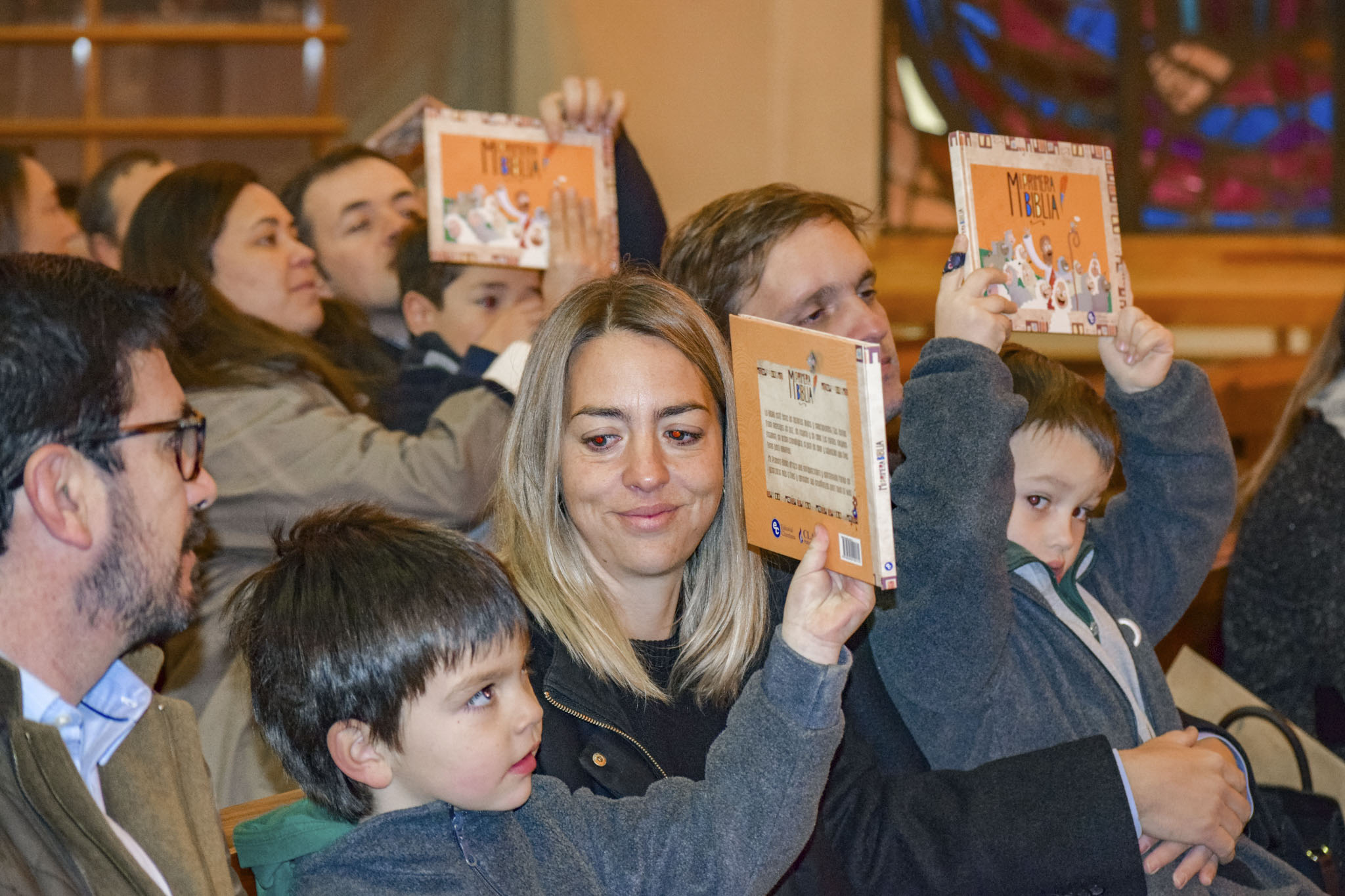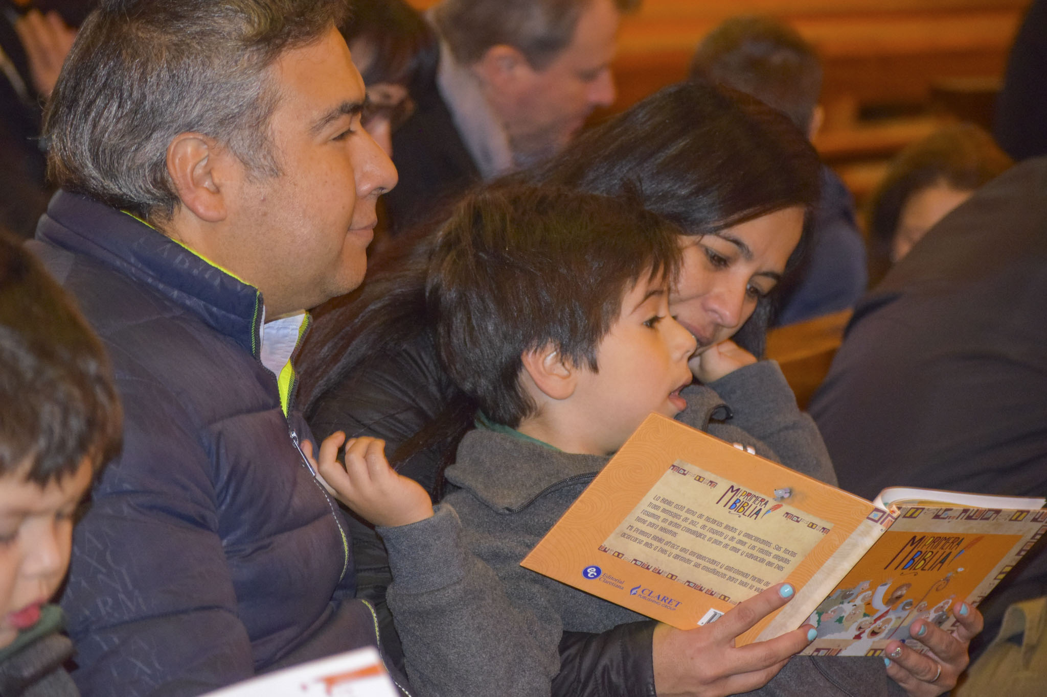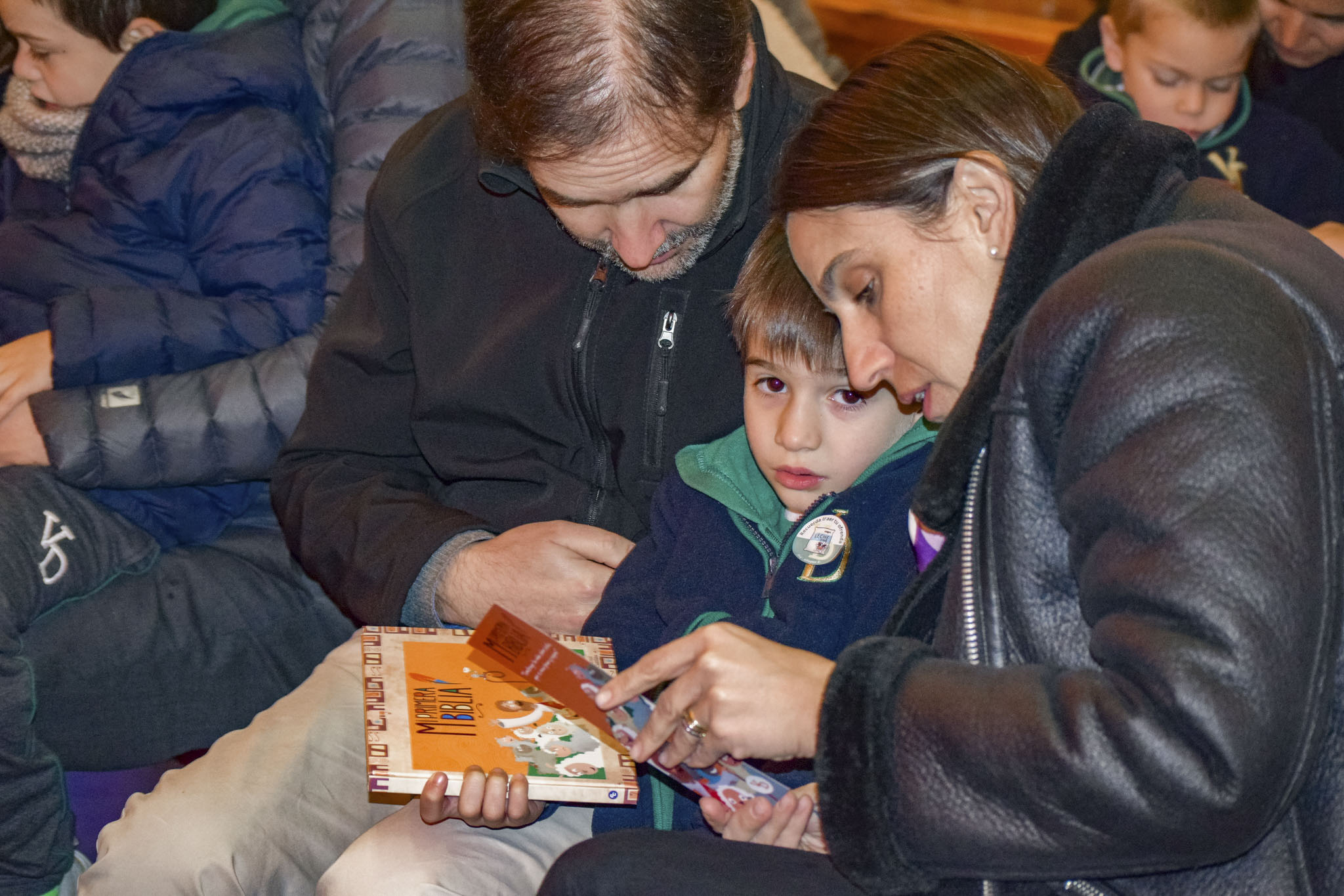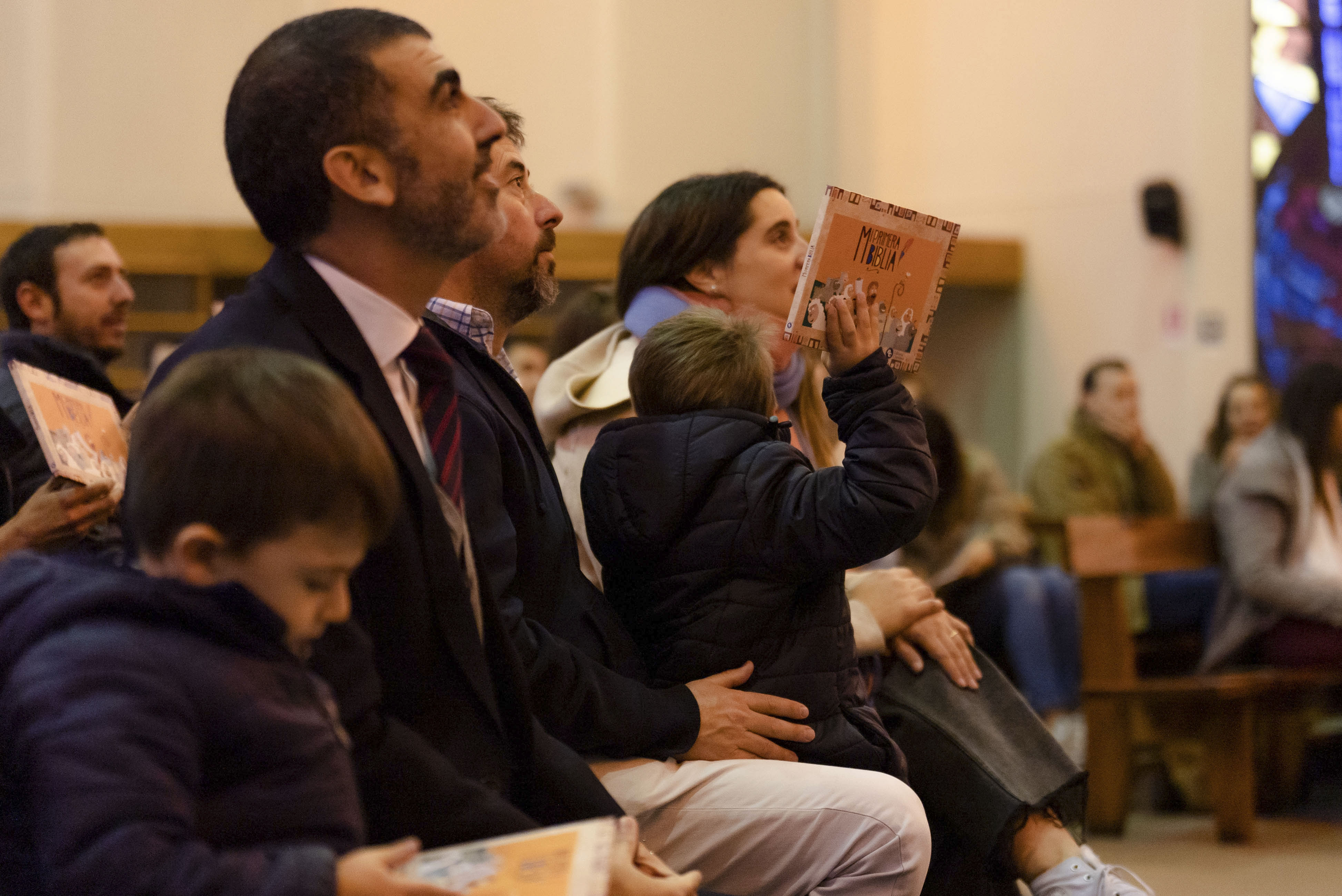 Luego de bendecir las biblias, los padres hicieron entrega de este especial libro a sus hijos y de un marcador de páginas, que los ayudará en la lectura de la Palabra de Dios y de sus enseñanzas.