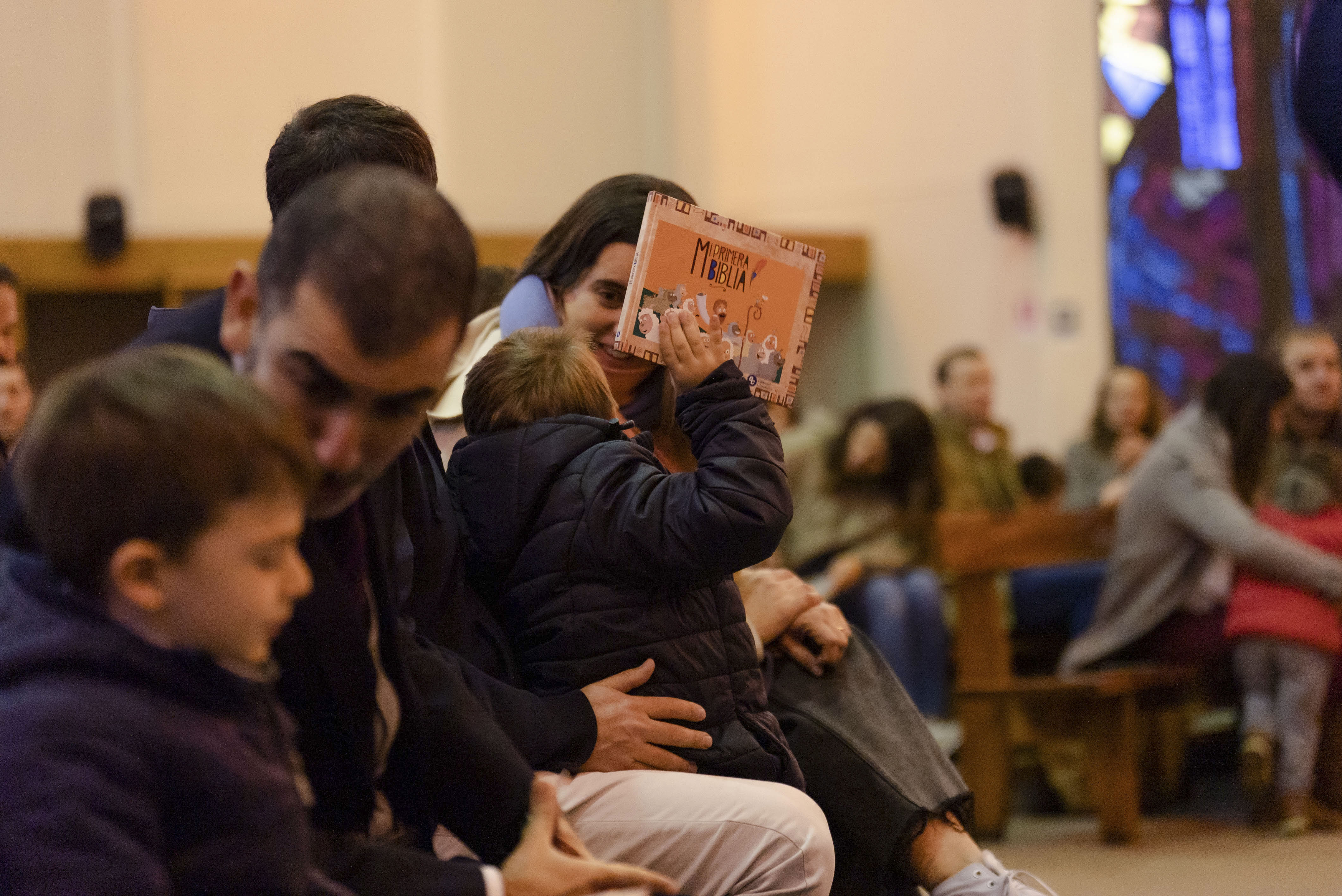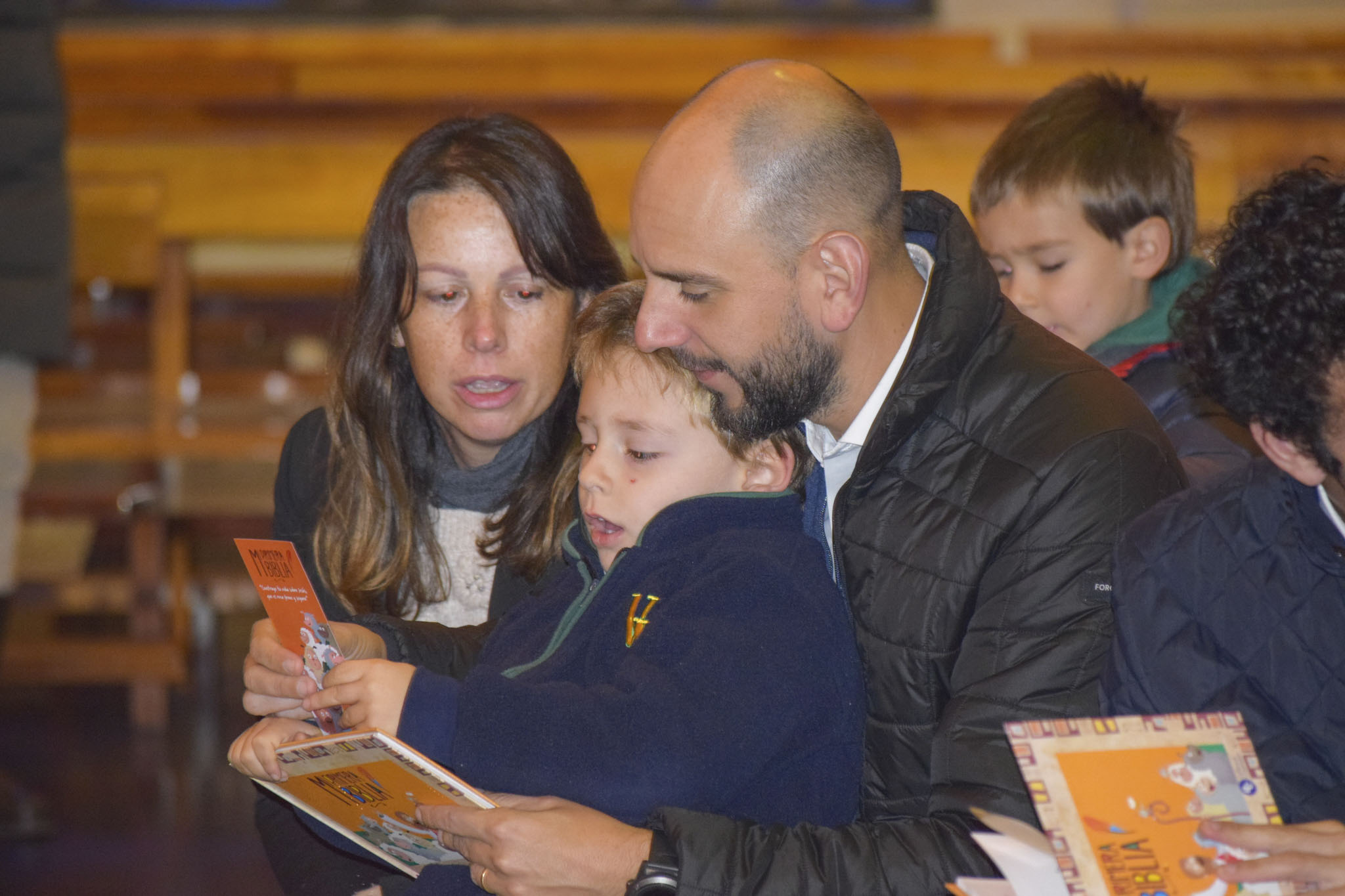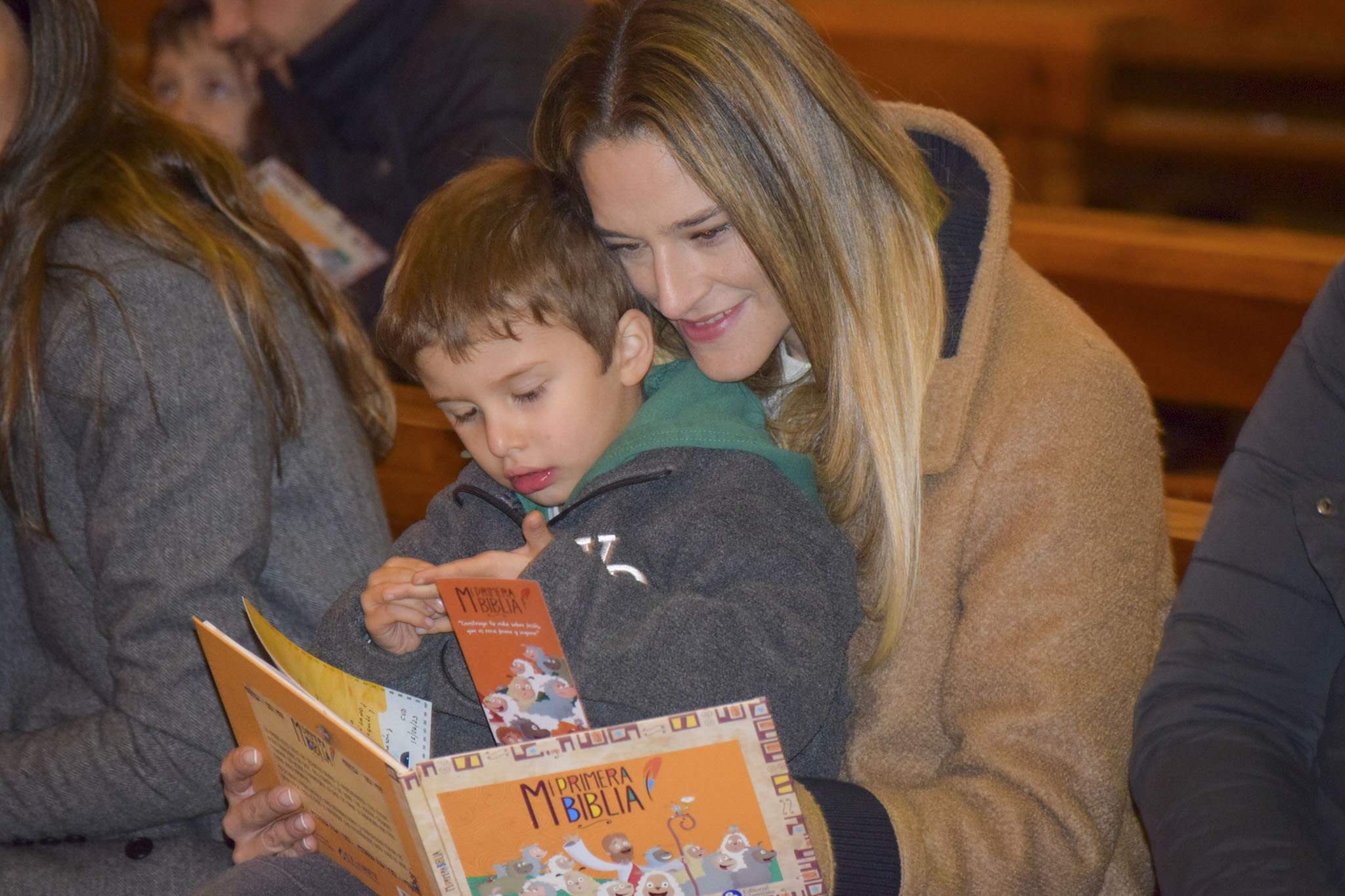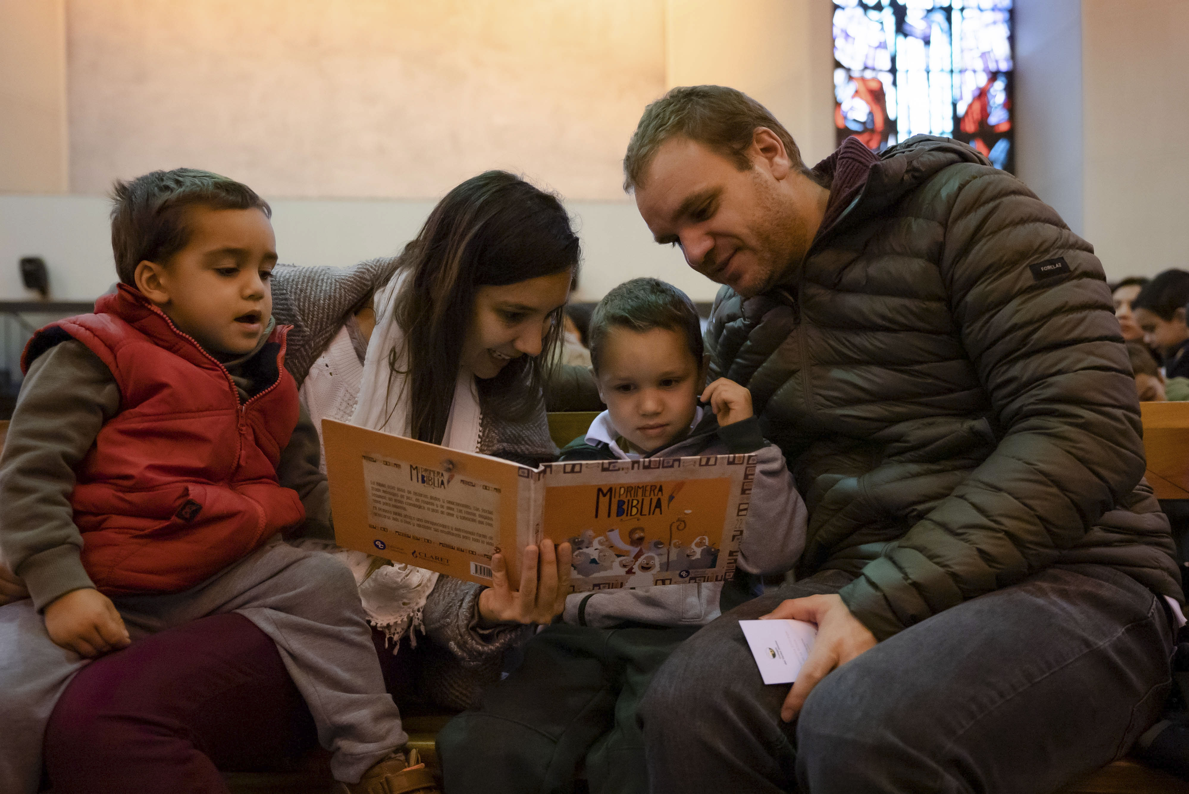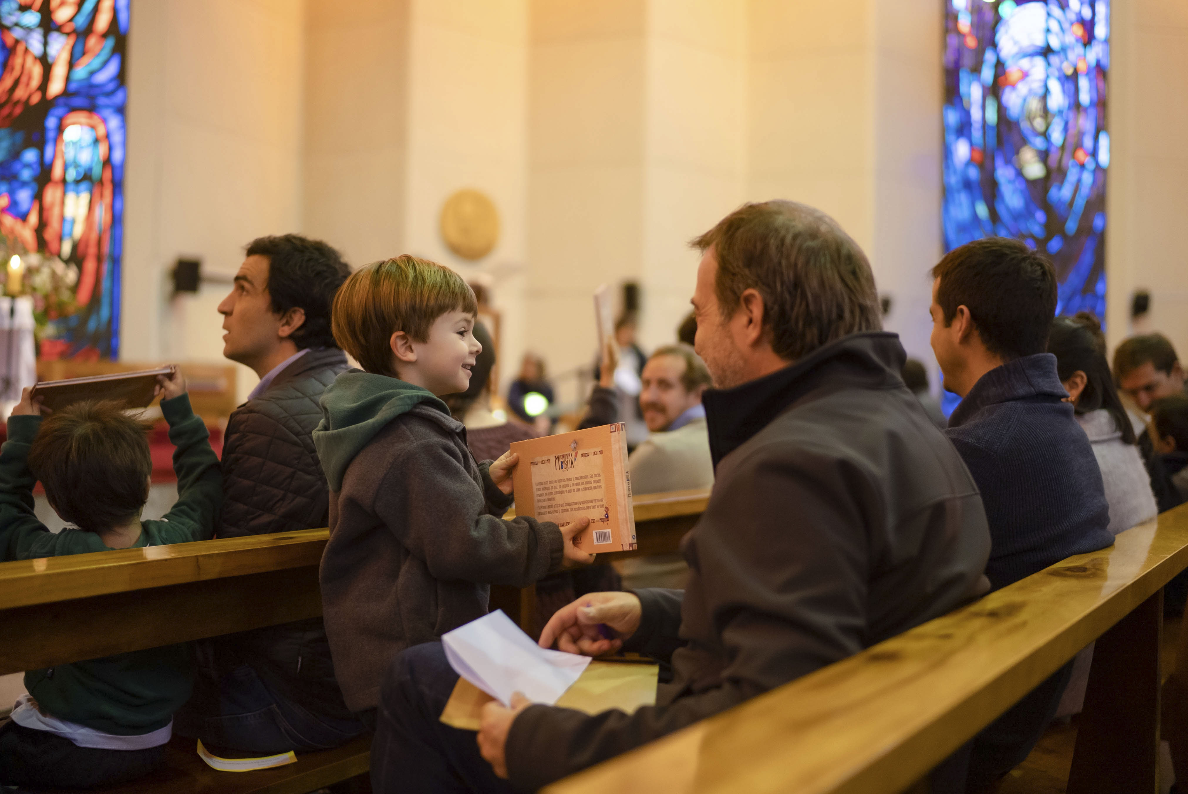 Luego de bendecir las biblias, los padres hicieron entrega de este especial libro a sus hijos y de un marcador de páginas, que los ayudará en la lectura de la Palabra de Dios y de sus enseñanzas.