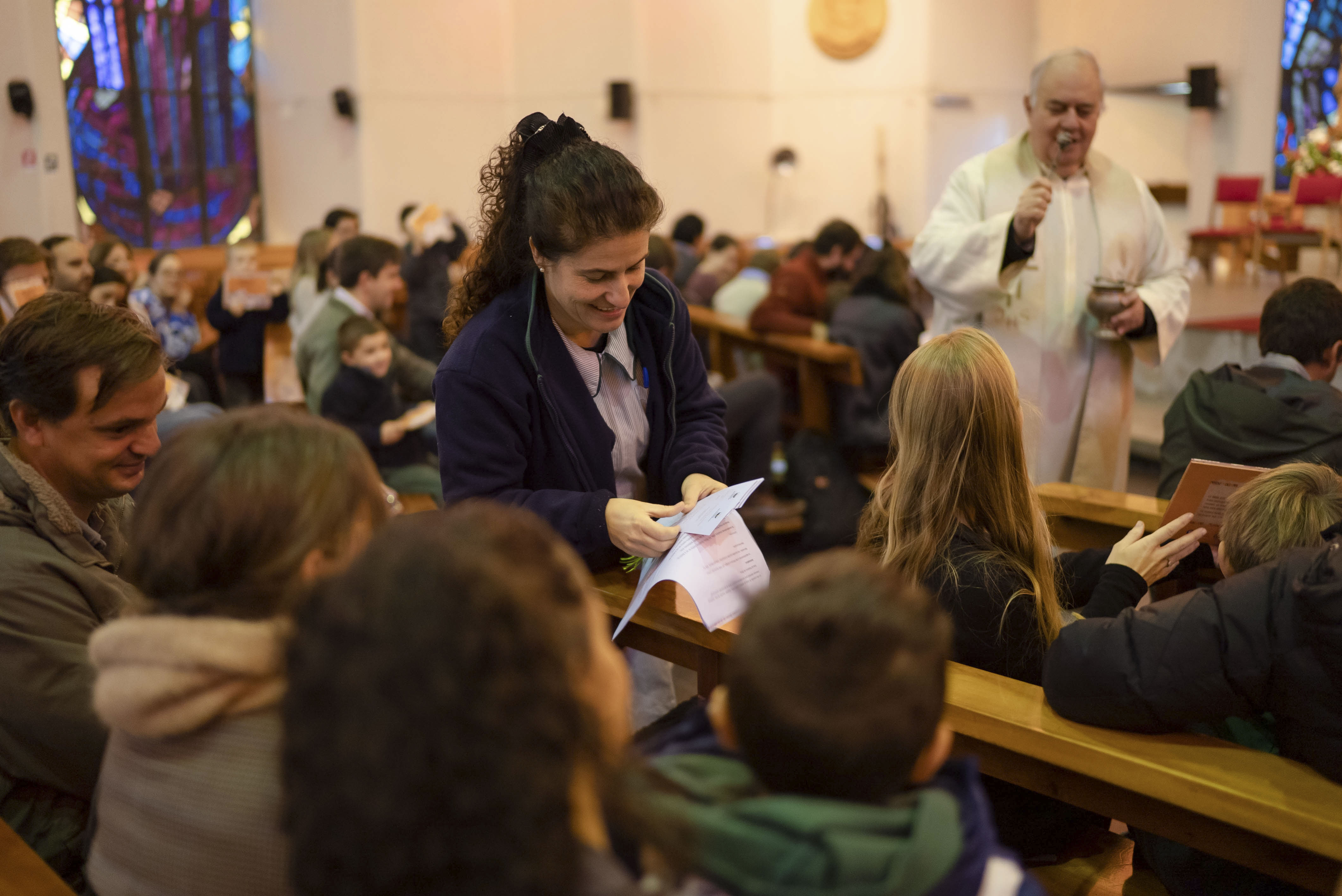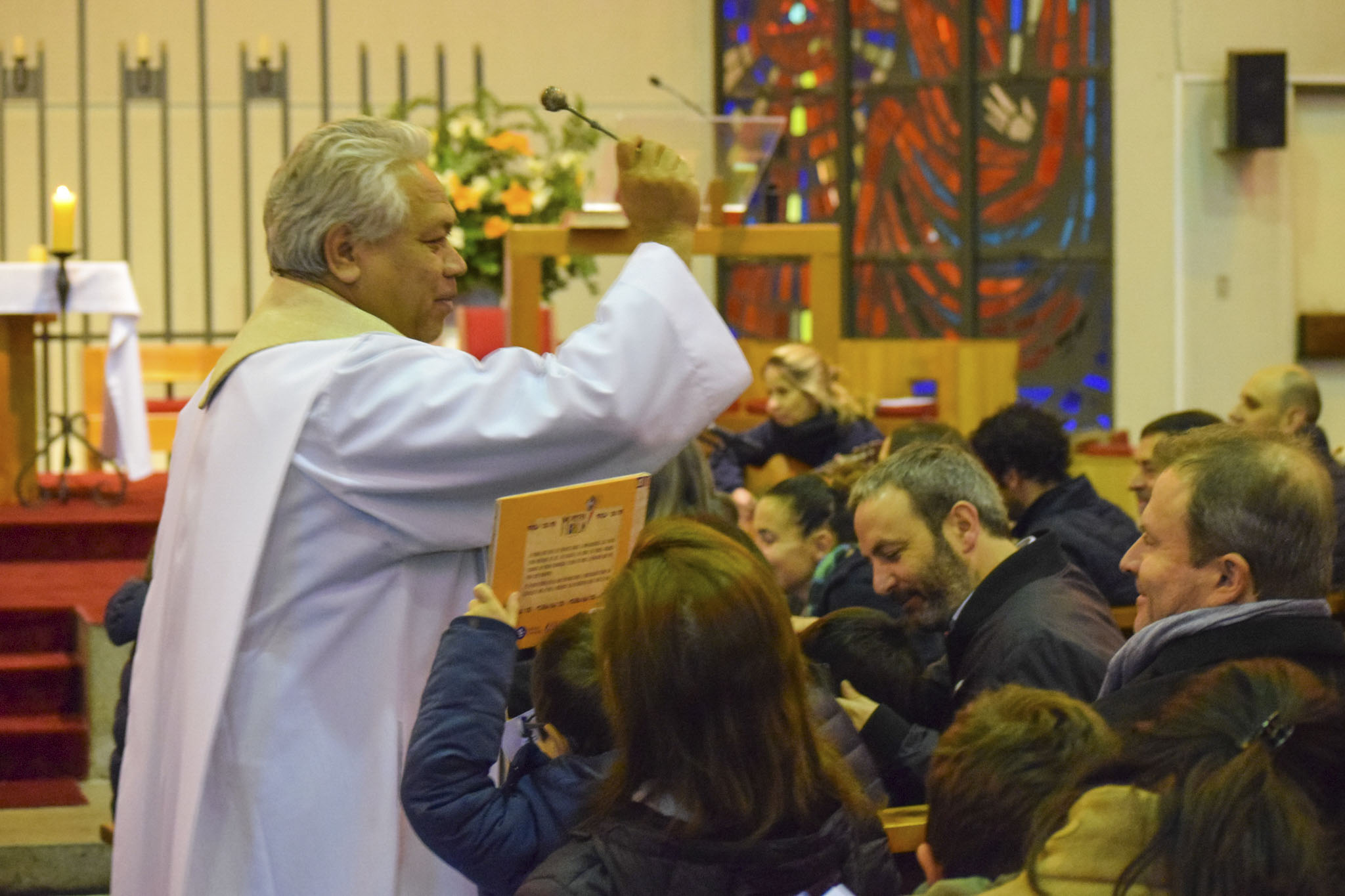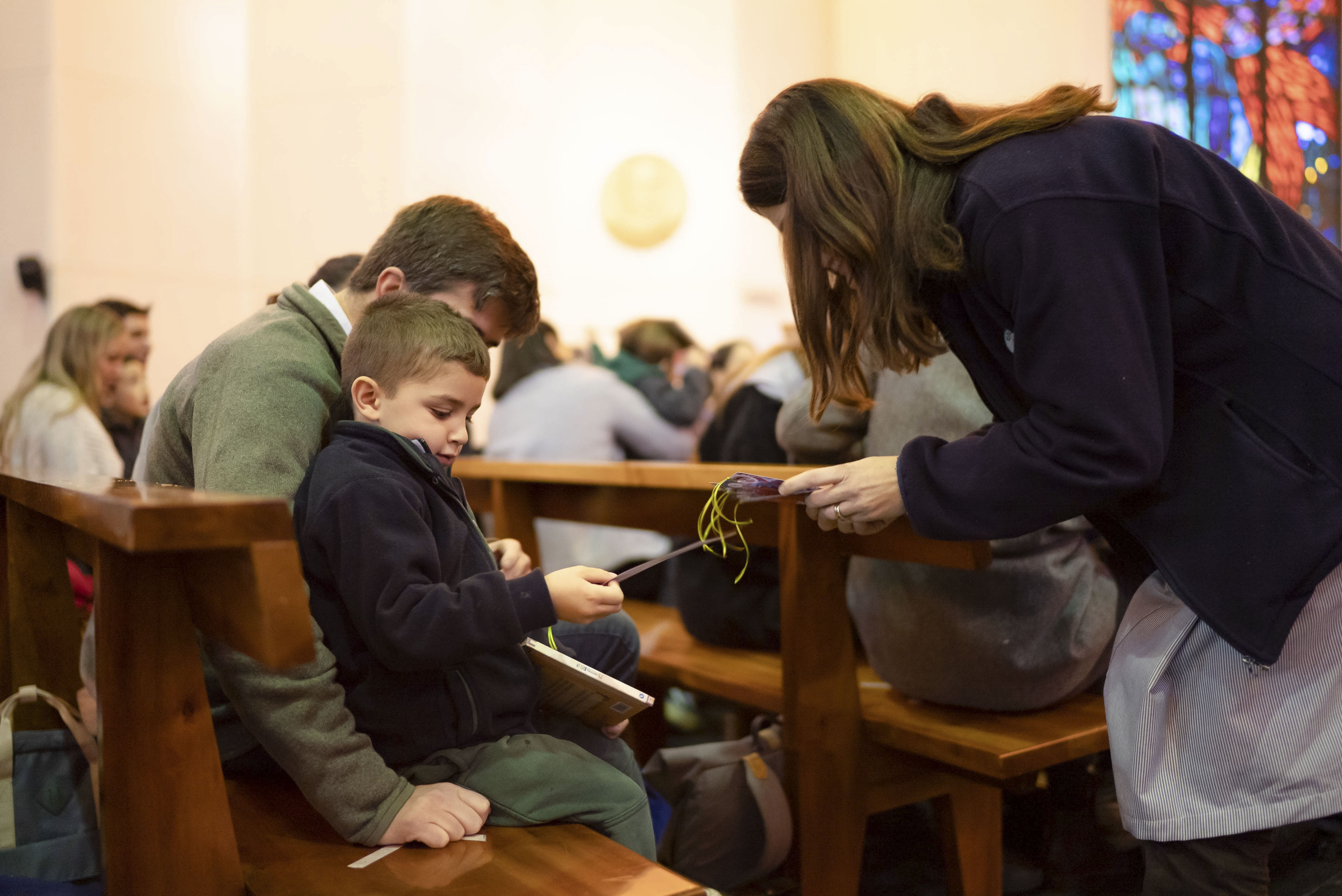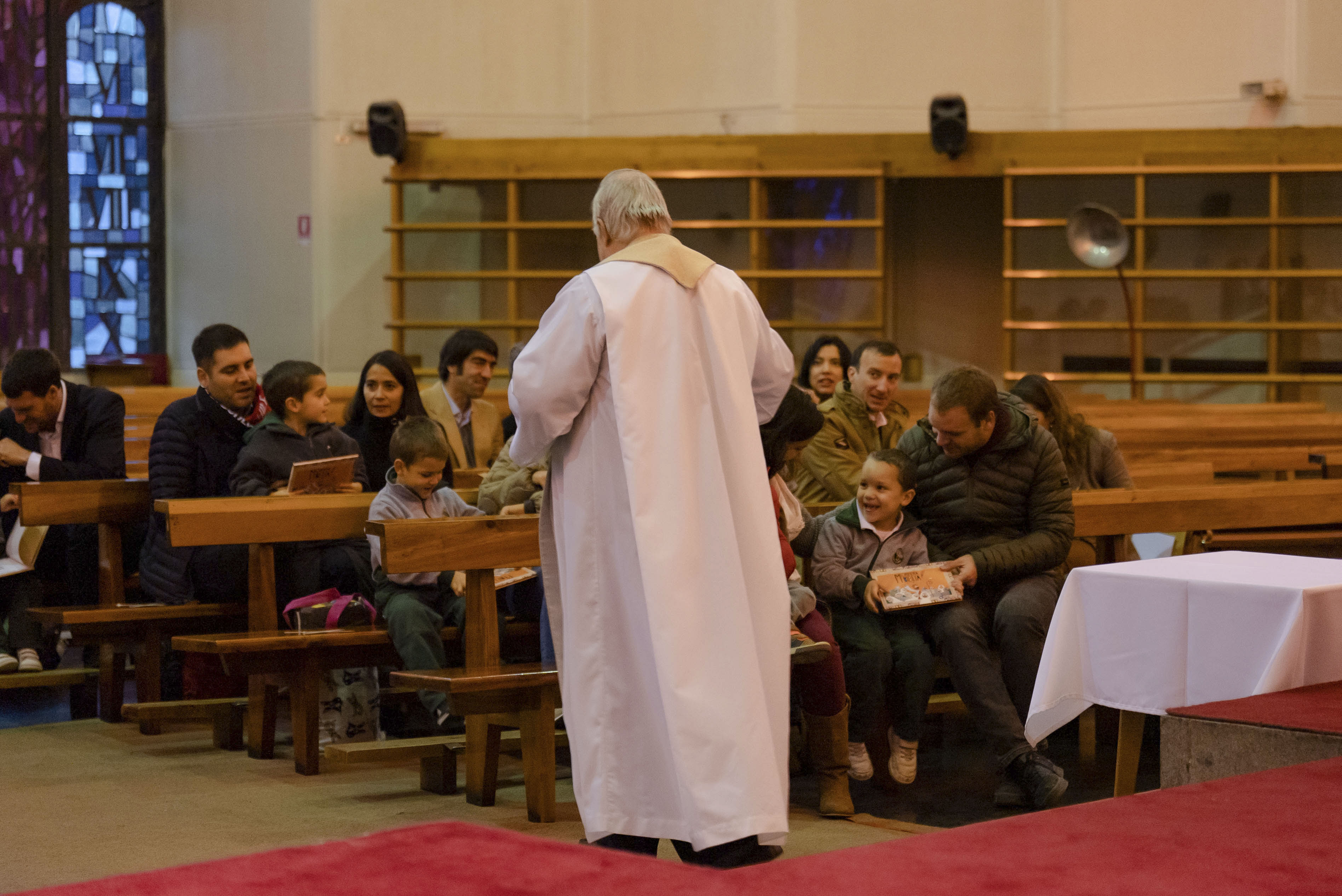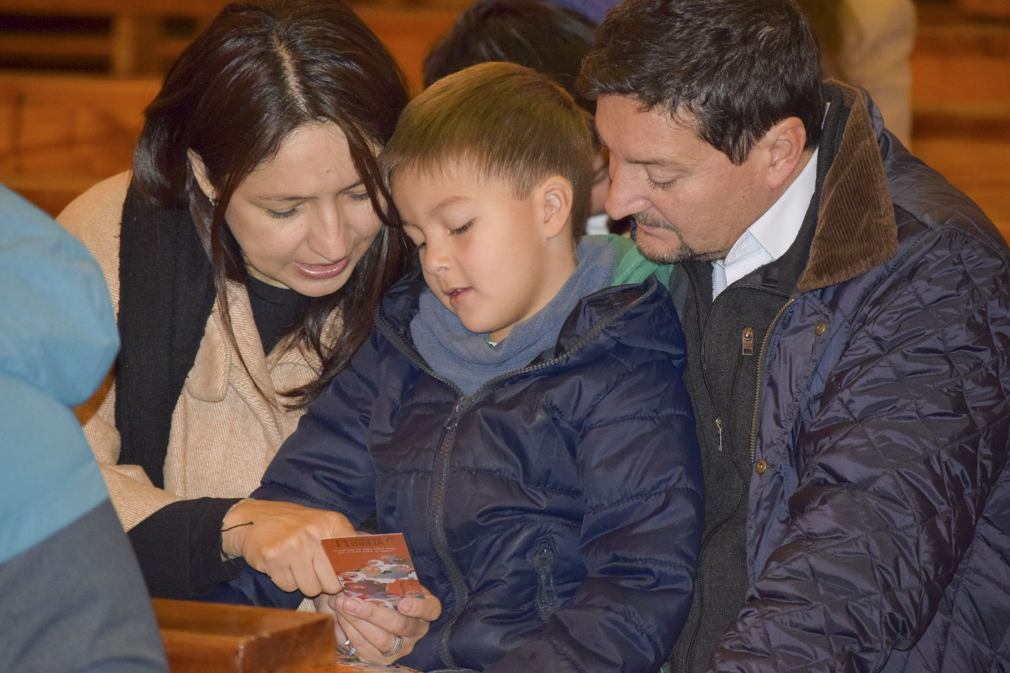 Luego de bendecir las biblias, los padres hicieron entrega de este especial libro a sus hijos y de un marcador de páginas, que los ayudará en la lectura de la Palabra de Dios y de sus enseñanzas.
