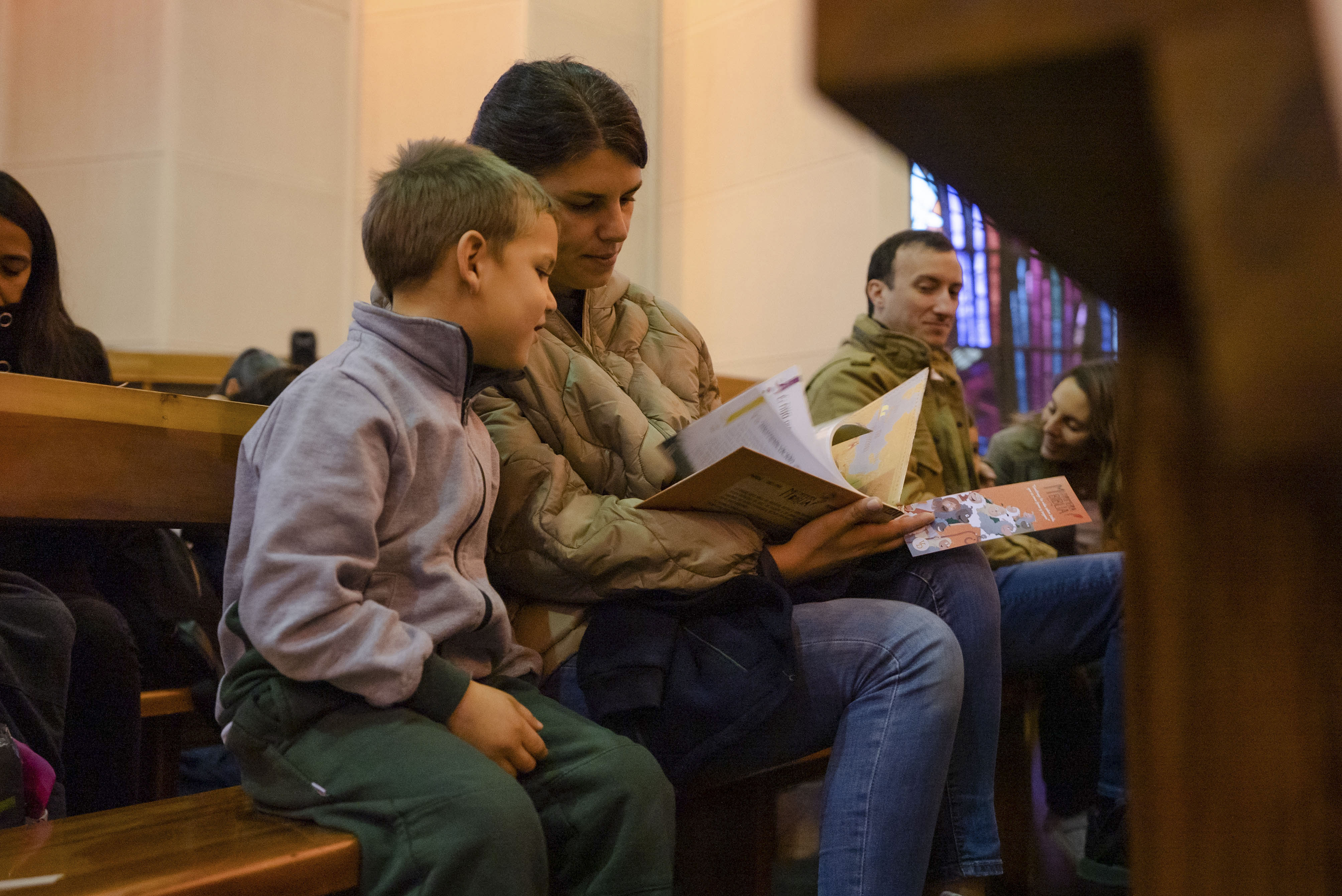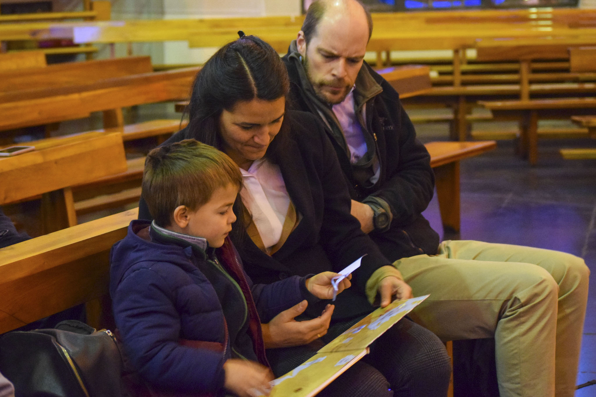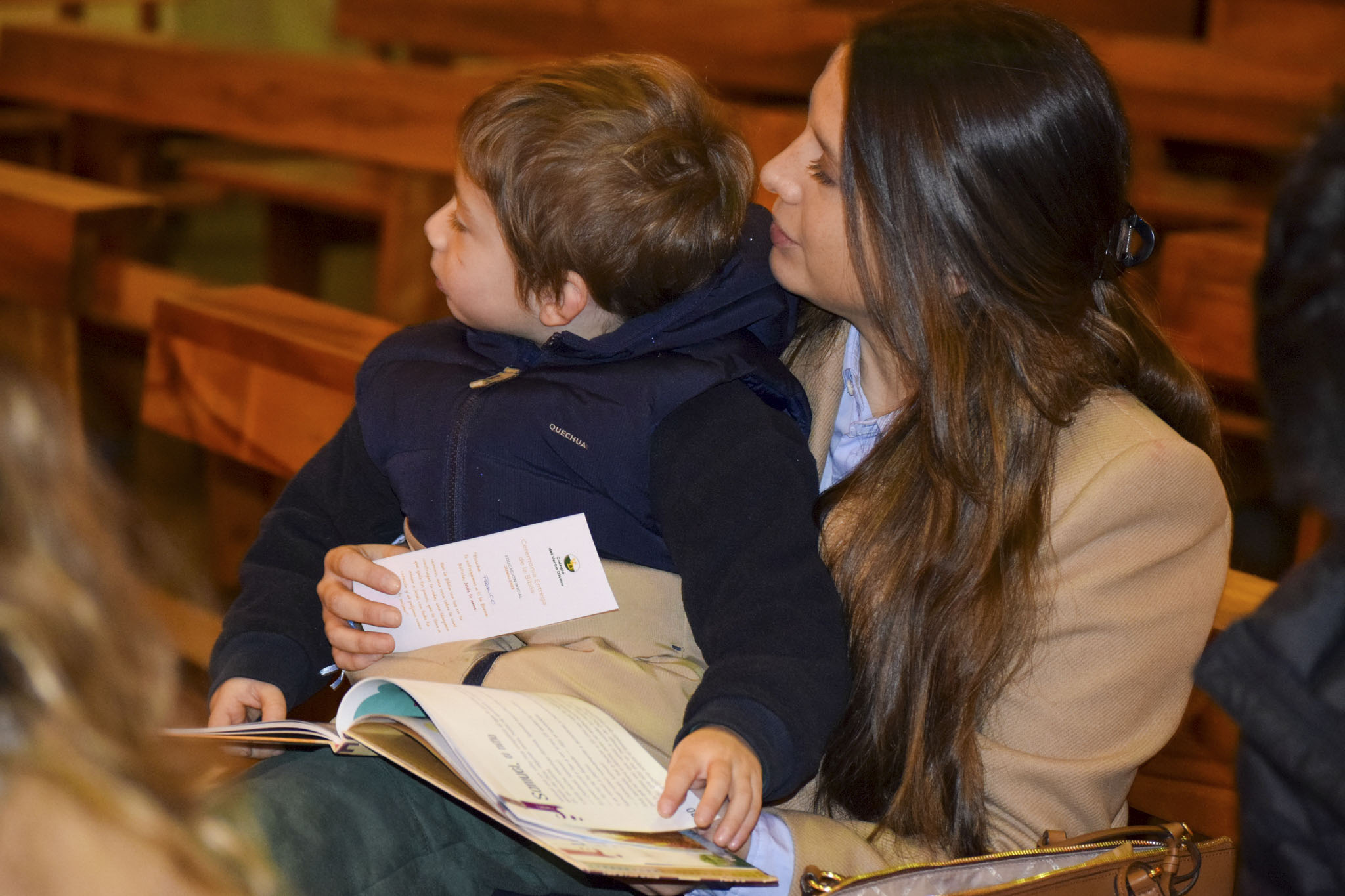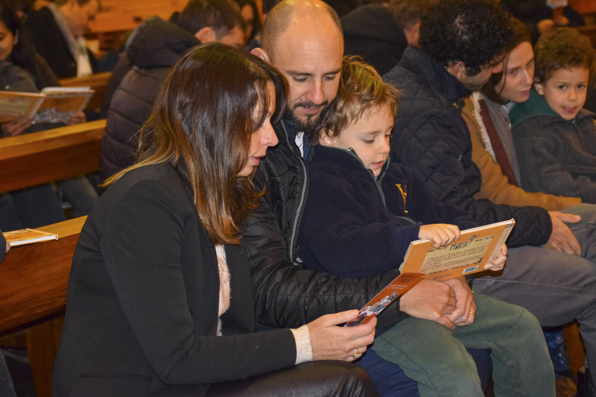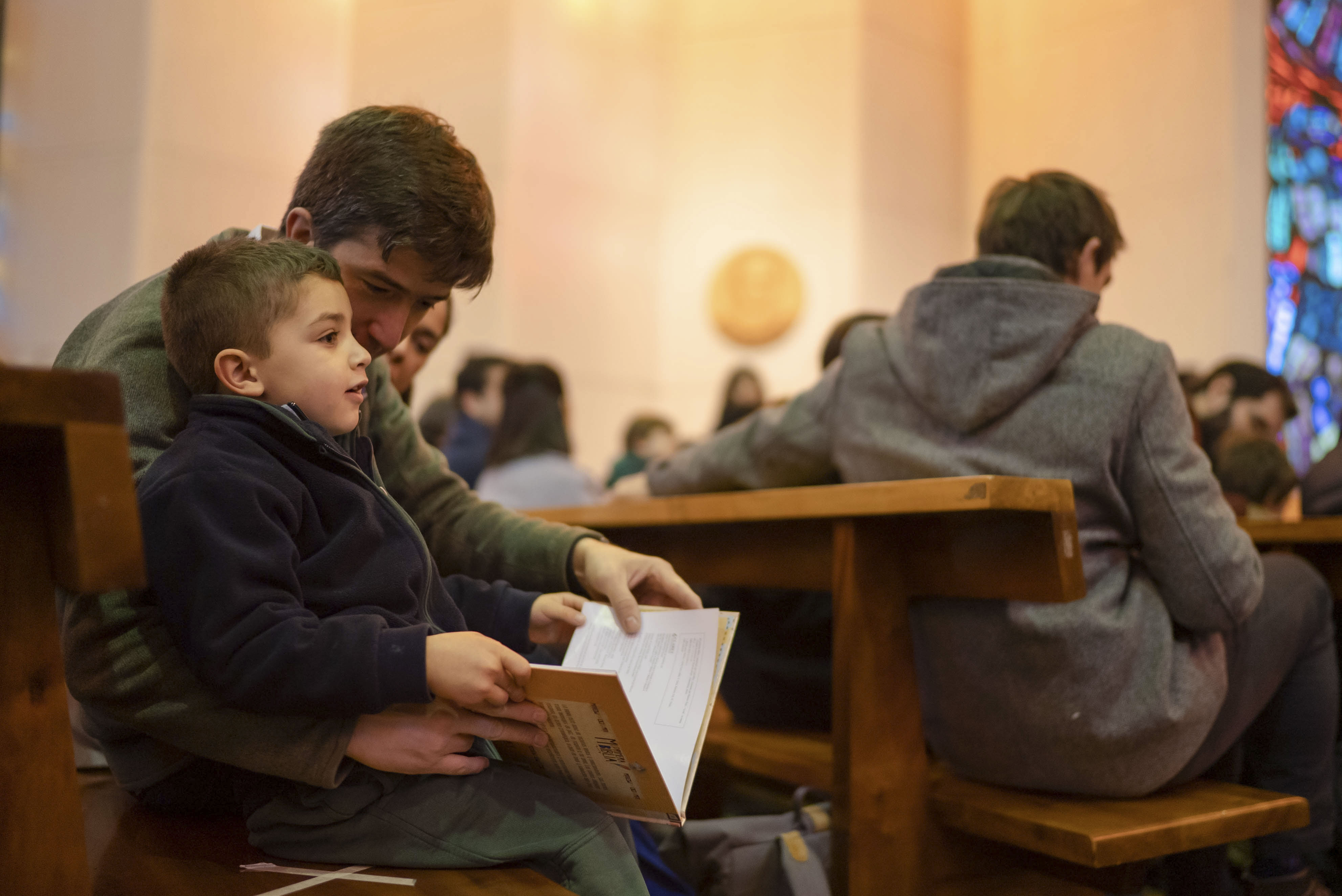 Luego de bendecir las biblias, los padres hicieron entrega de este especial libro a sus hijos y de un marcador de páginas, que los ayudará en la lectura de la Palabra de Dios y de sus enseñanzas.