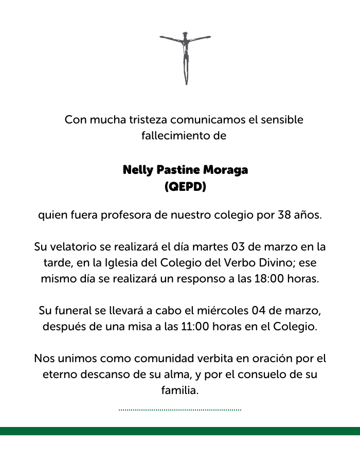 Hoy lunes 02 de enero, Nelly Pastine Moraga QEPD, quien fuera profesora de nuestro colegio por más de 38 años.