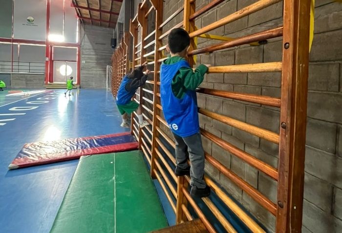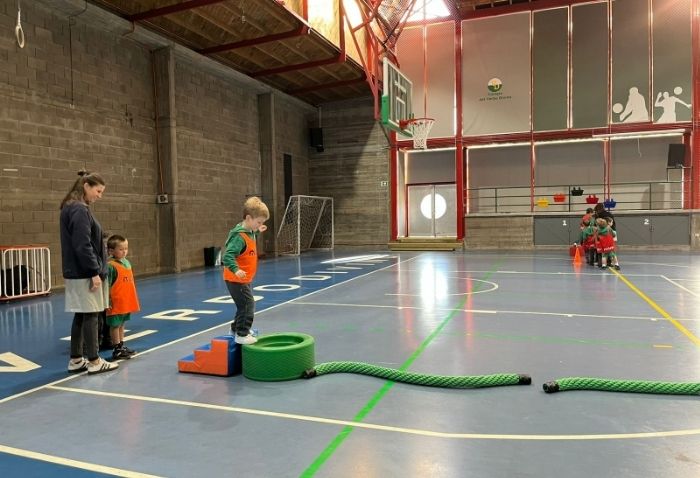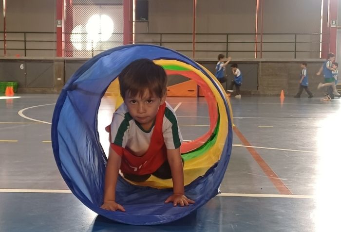 En las clases, que se desarrollaron por curso dirigidas por la profesora Catalina Echeverría, se realizan actividades motrices acorde a la edad de los niños, en las que además se refuerzan los valores de nuestro colegio.