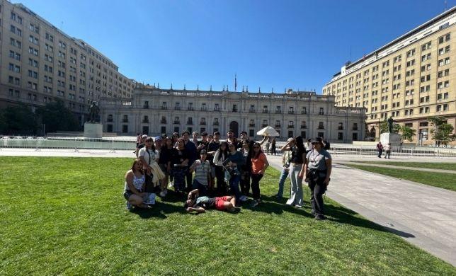 Desde Puerto Domínguez, el grupo de alumnos de 8° EB viajó a Santiago para participar de su viaje de estudios.