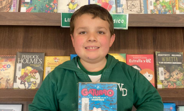 Se trata de Juan José García alumno de 2° EB, que disfruta de la lectura desde Kínder cuando aprendió a leer.